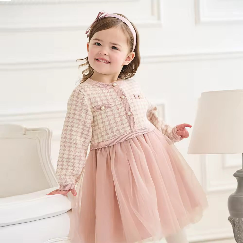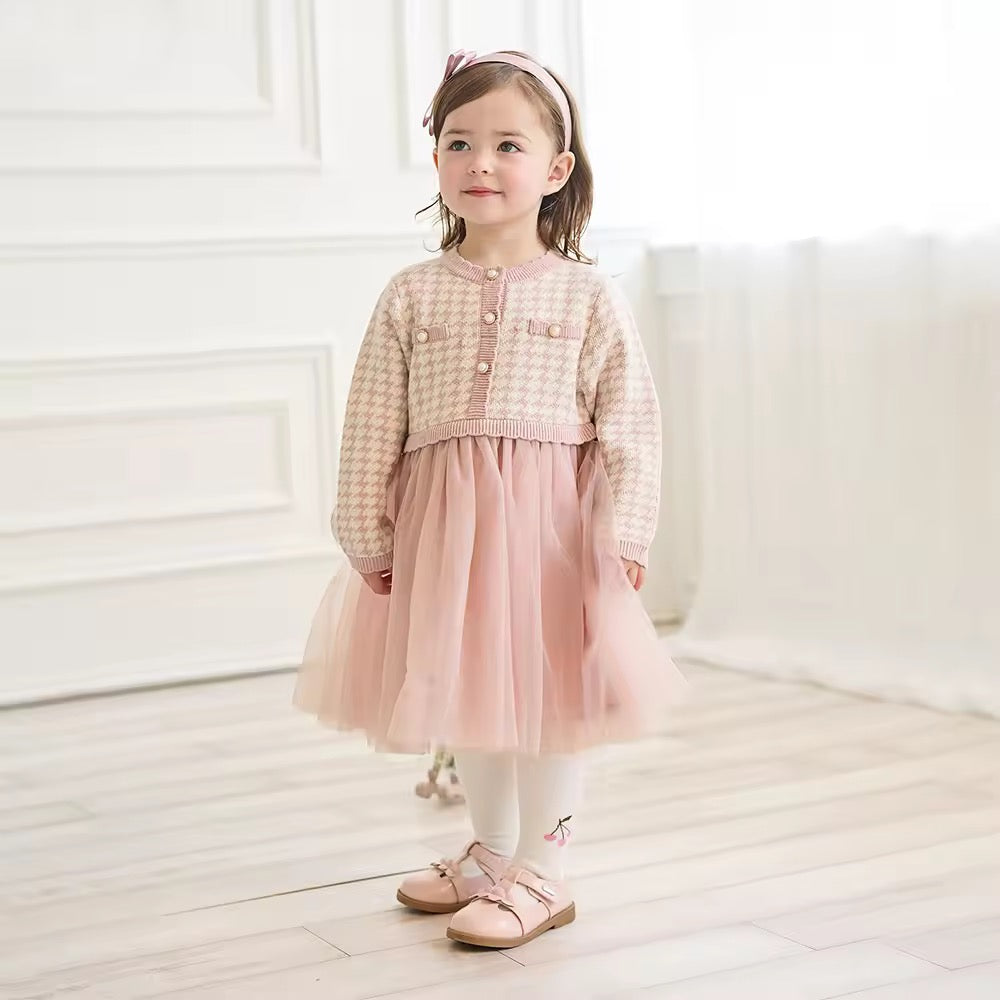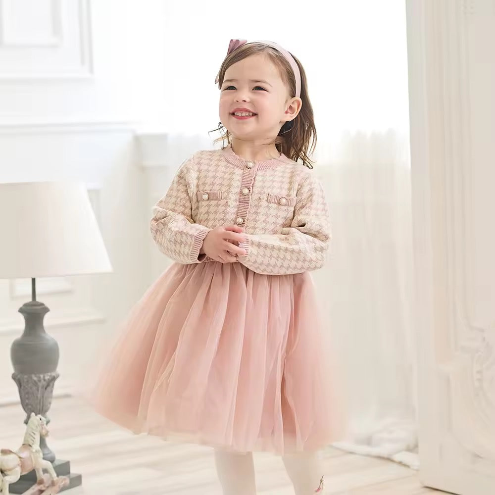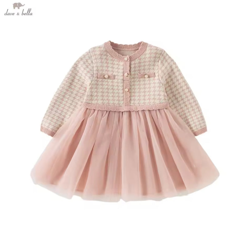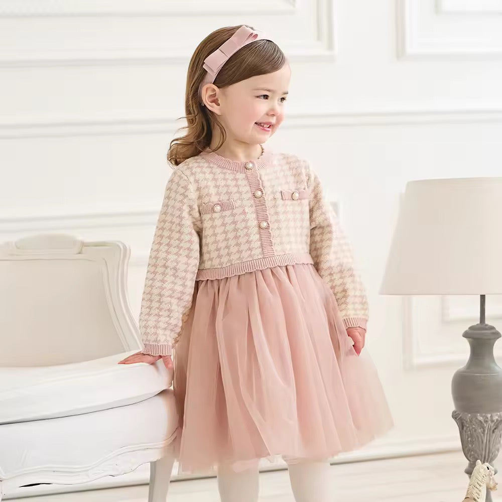 【予約】dave&bella デイブベラ ピンク千鳥格子柄チュールスカートワンピース DB3253125