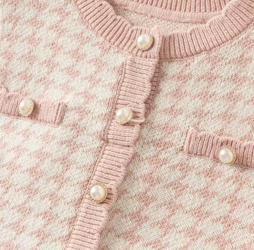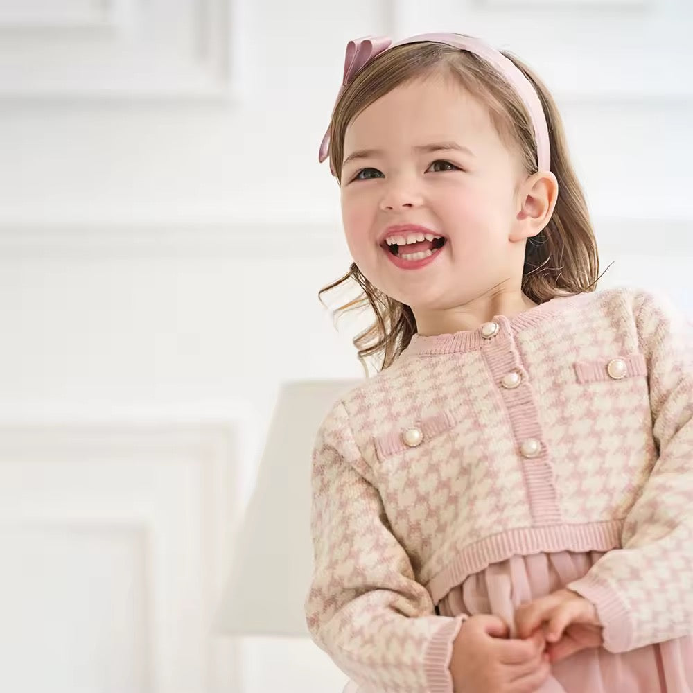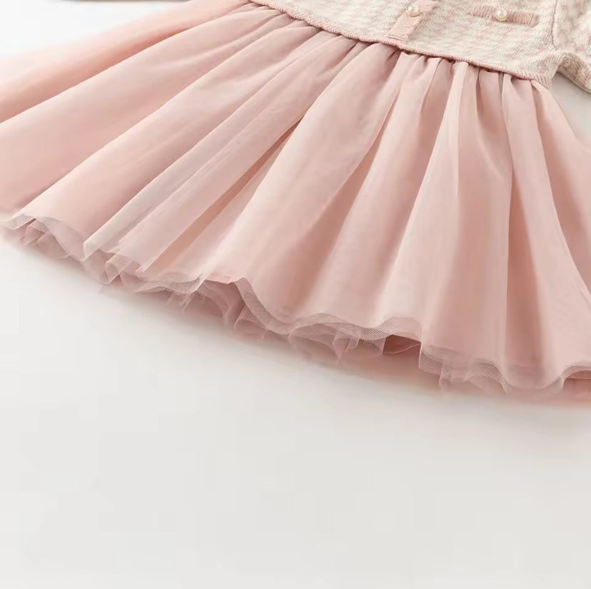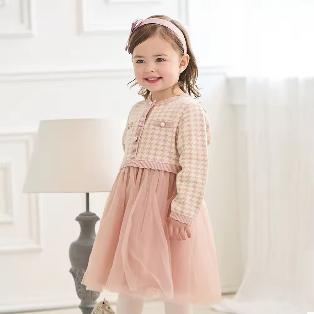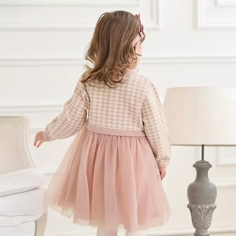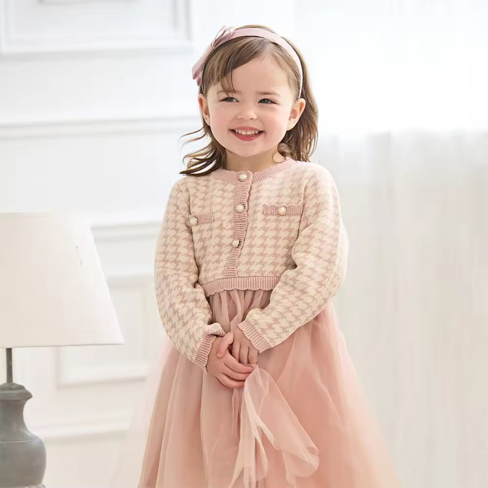 【予約】dave&bella デイブベラ ピンク千鳥格子柄チュールスカートワンピース DB3253125