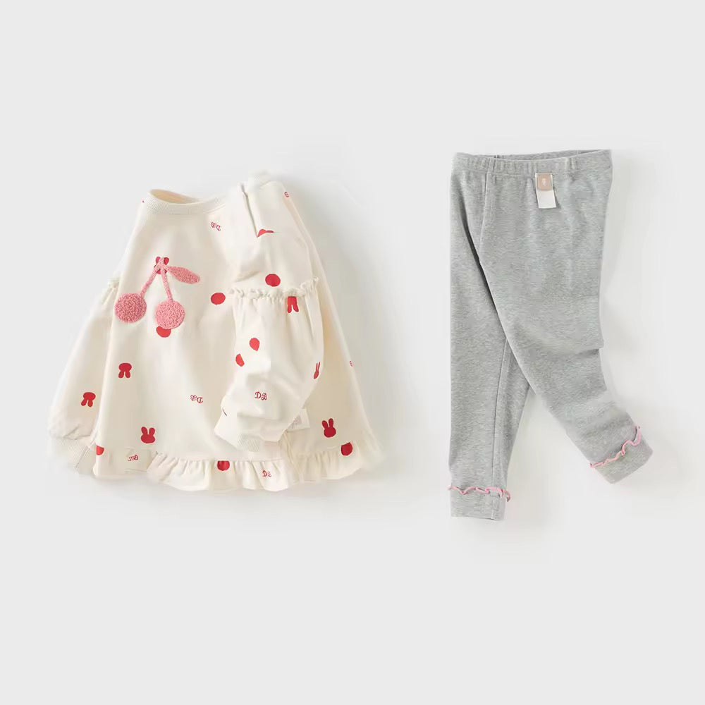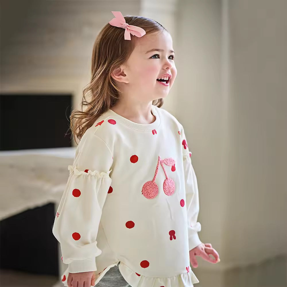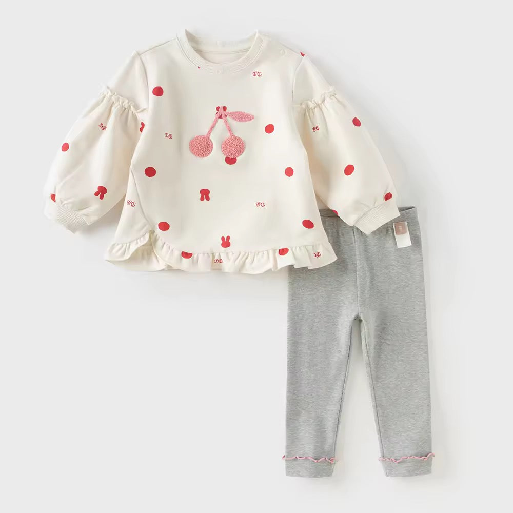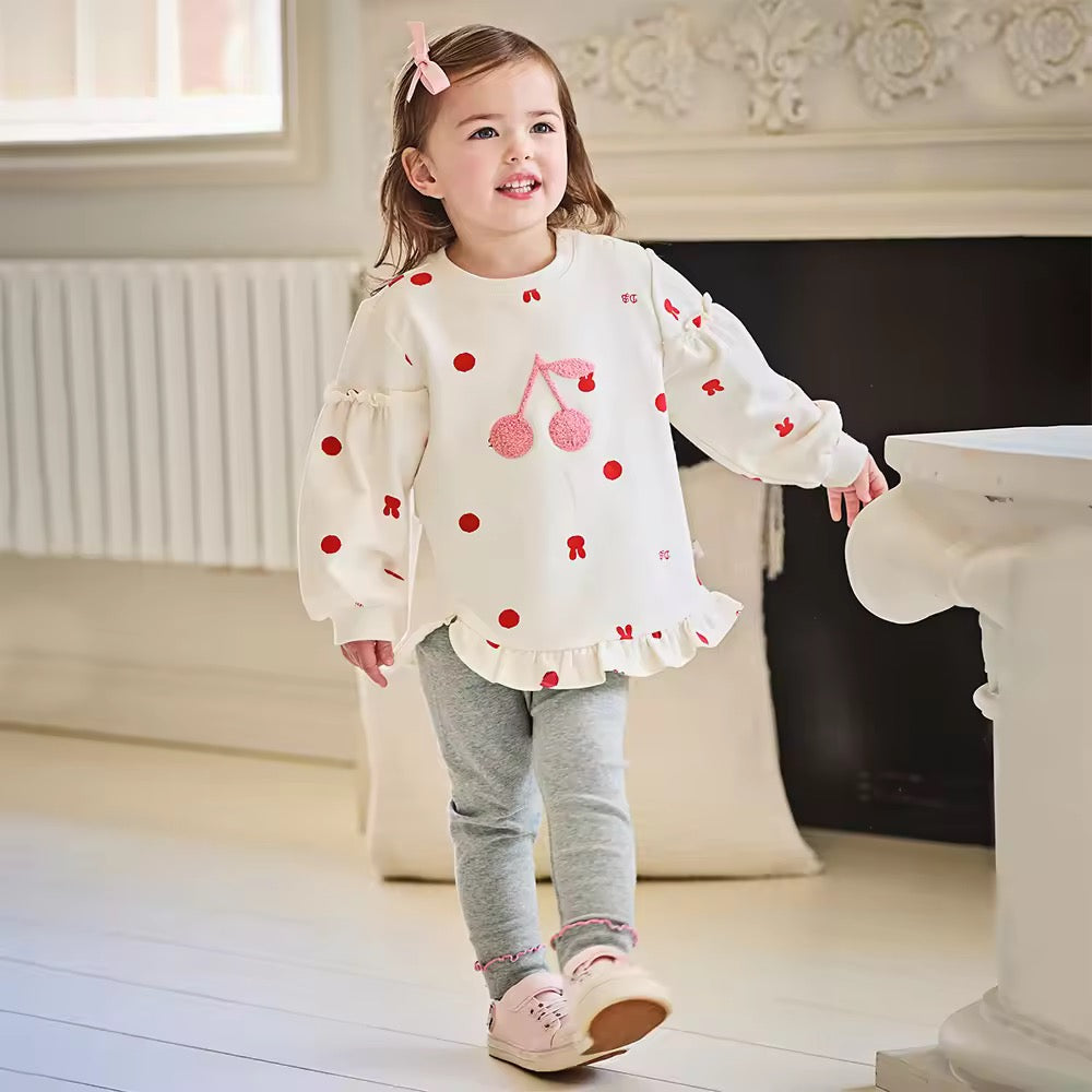 【予約】dave&bella デイブベラ ドットチェリー刺繍トップス&レギンスセット DB3253158