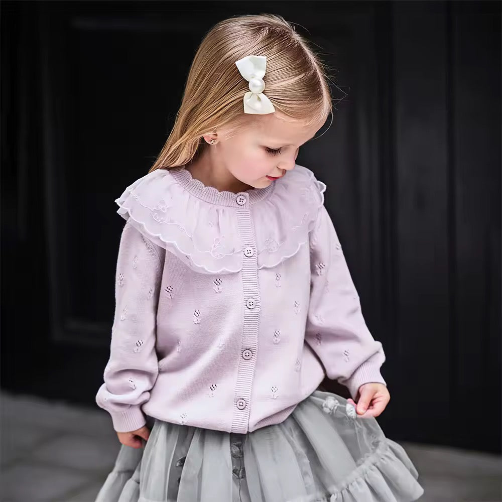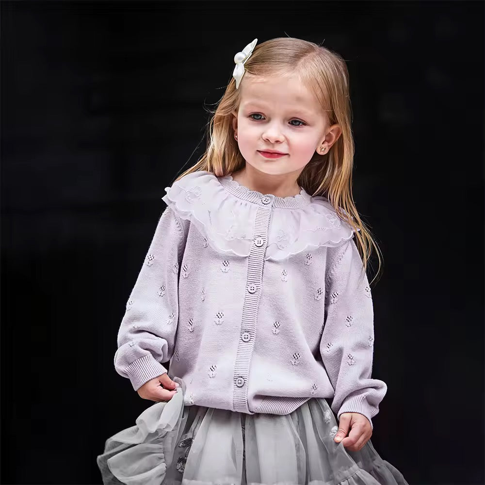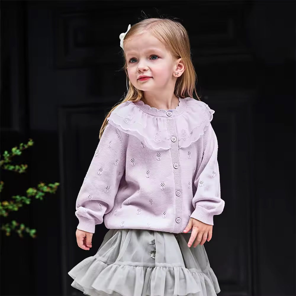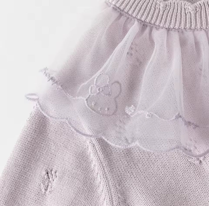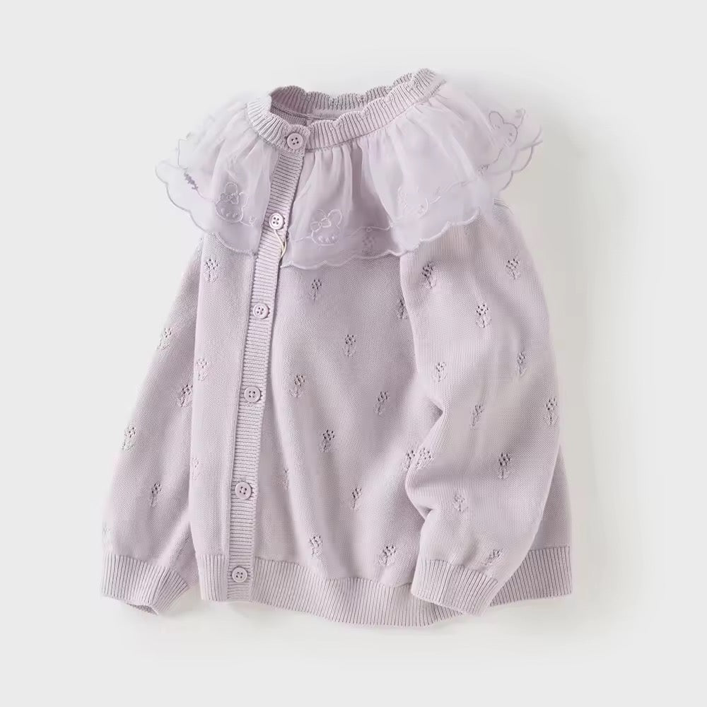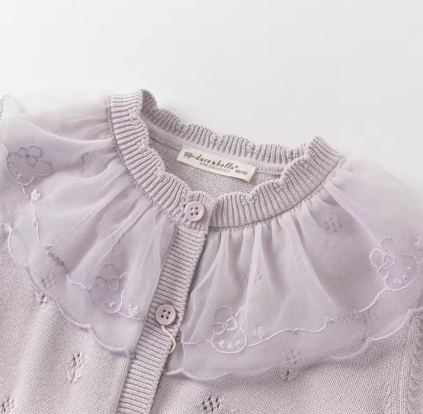 【予約】dave&bella デイブベラ うさちゃん刺繍チュール襟カーディガン DB3252641