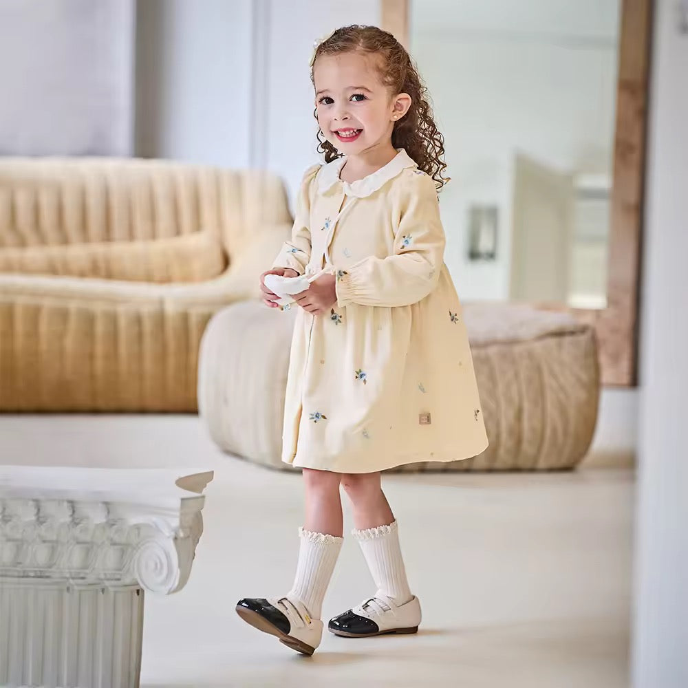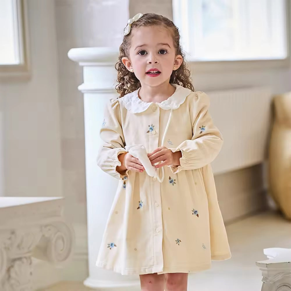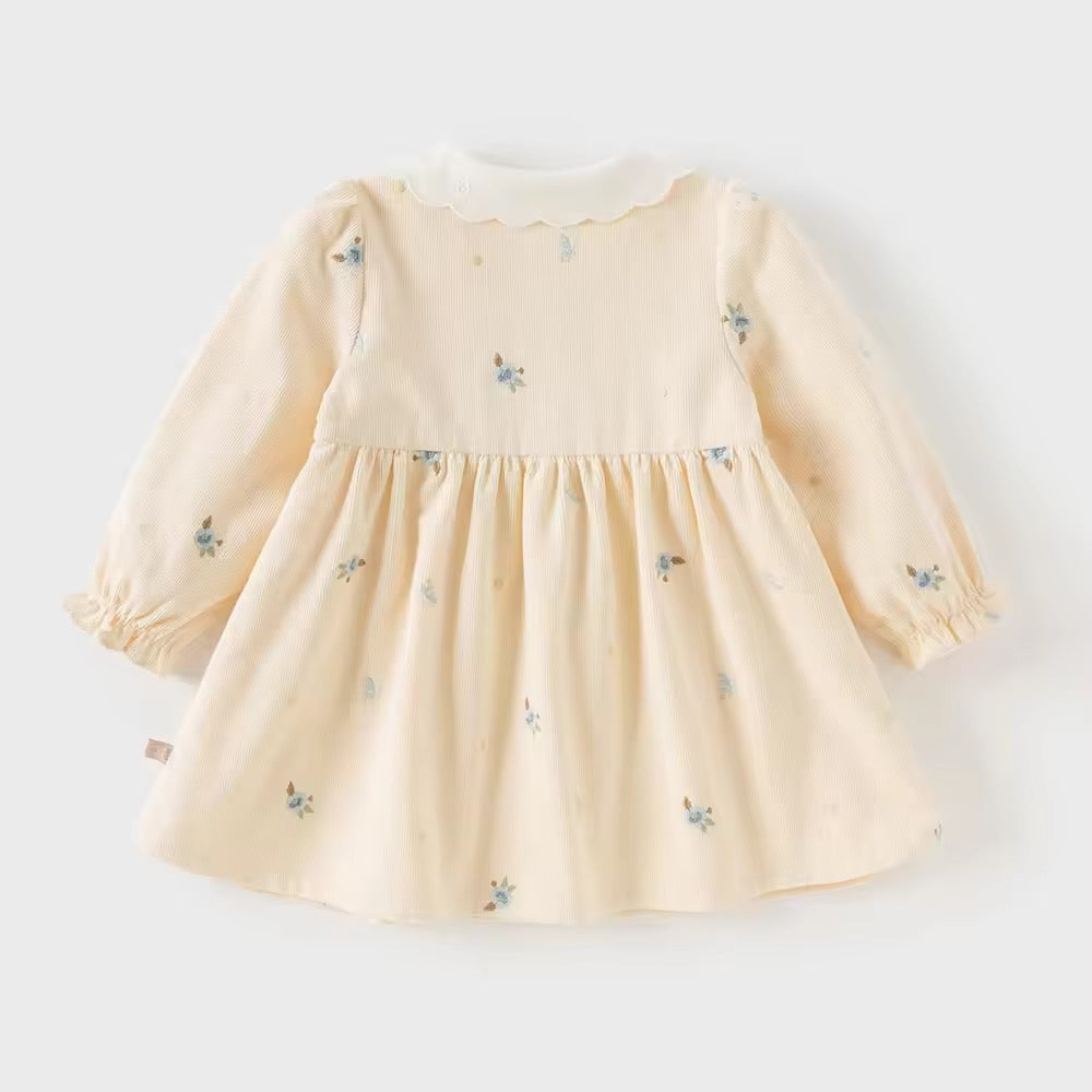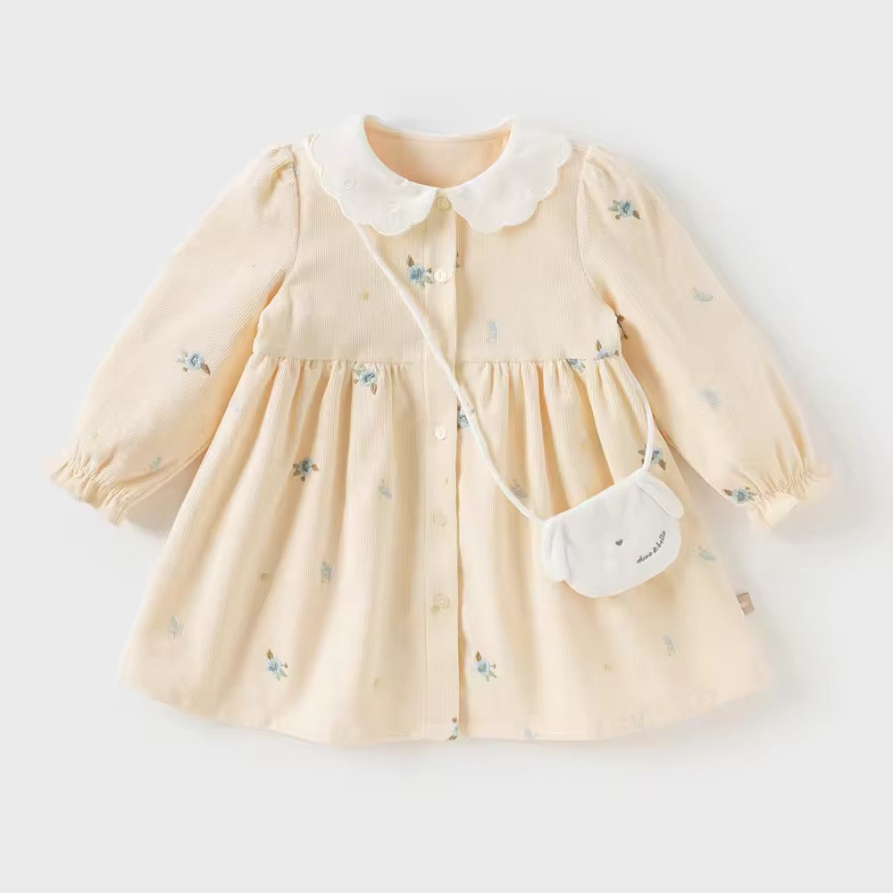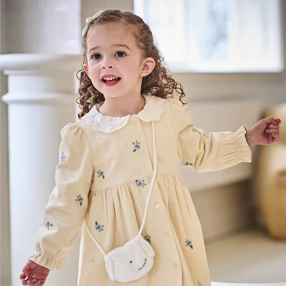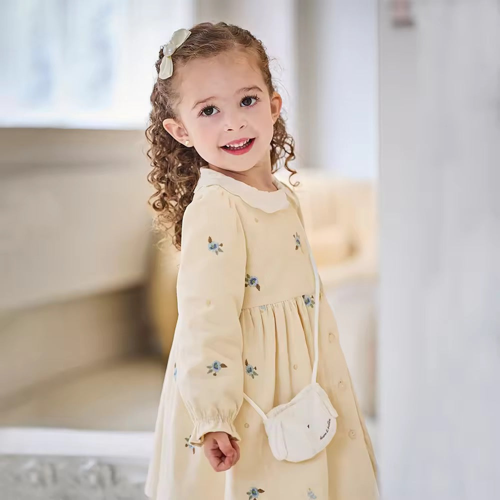 【予約】dave&bella デイブベラ ポシェット付きフラワー刺繍コーデュロイワンピース DB3253501