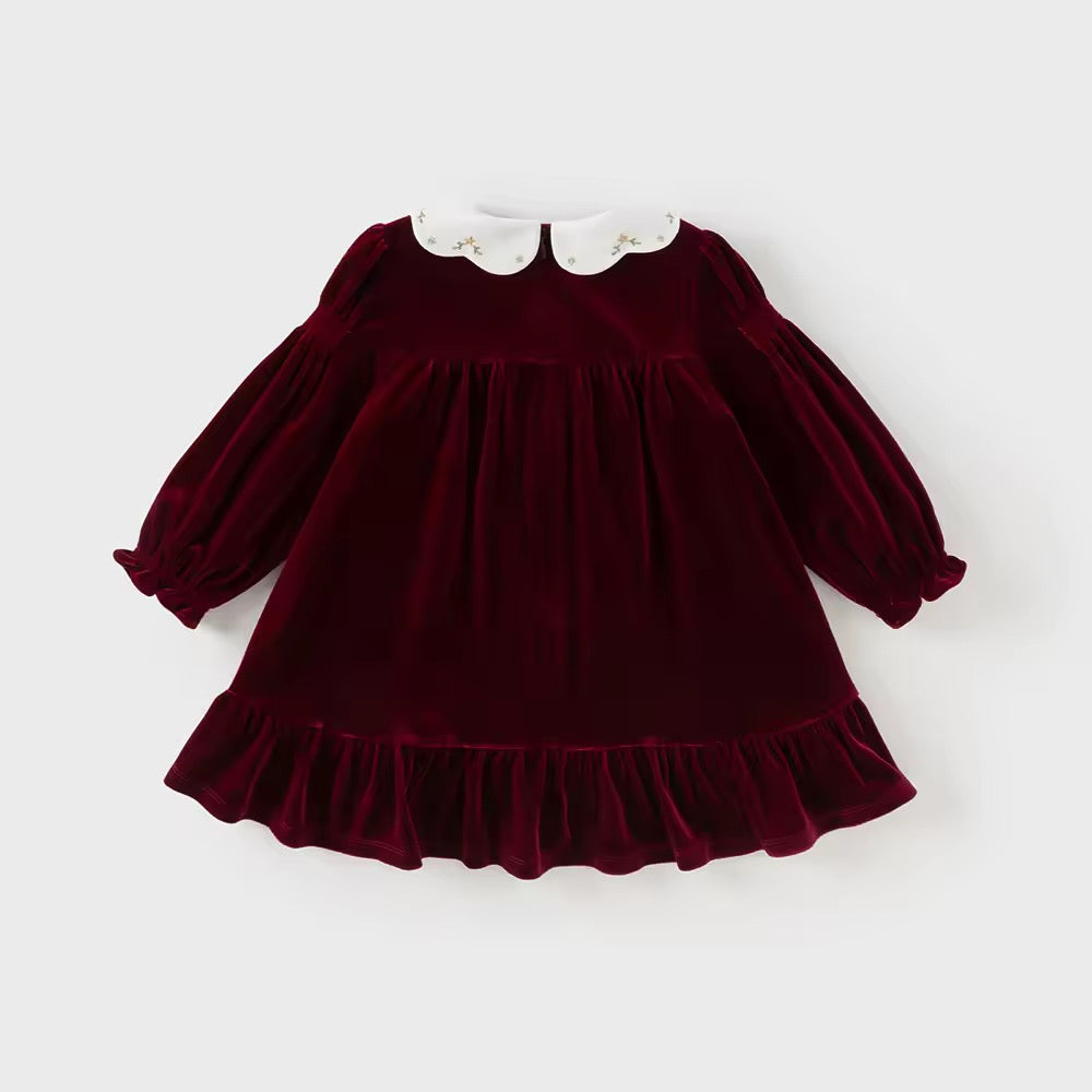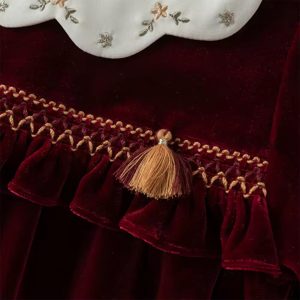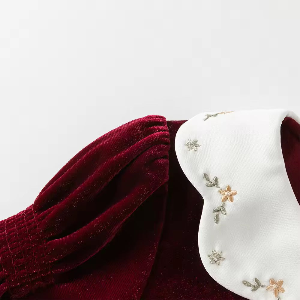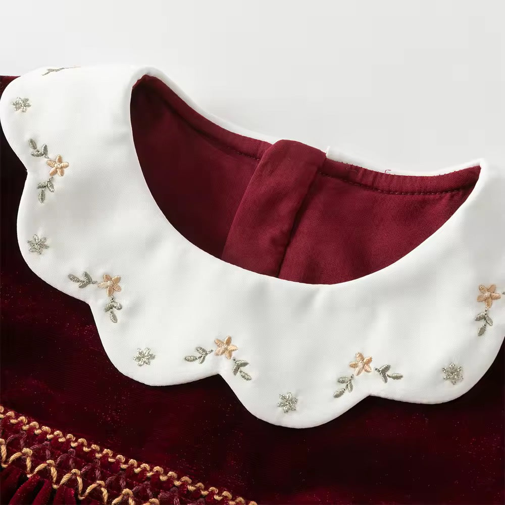 【予約】dave&bella デイブベラ 刺繍襟ワインレッドベロアワンピース DB3253130