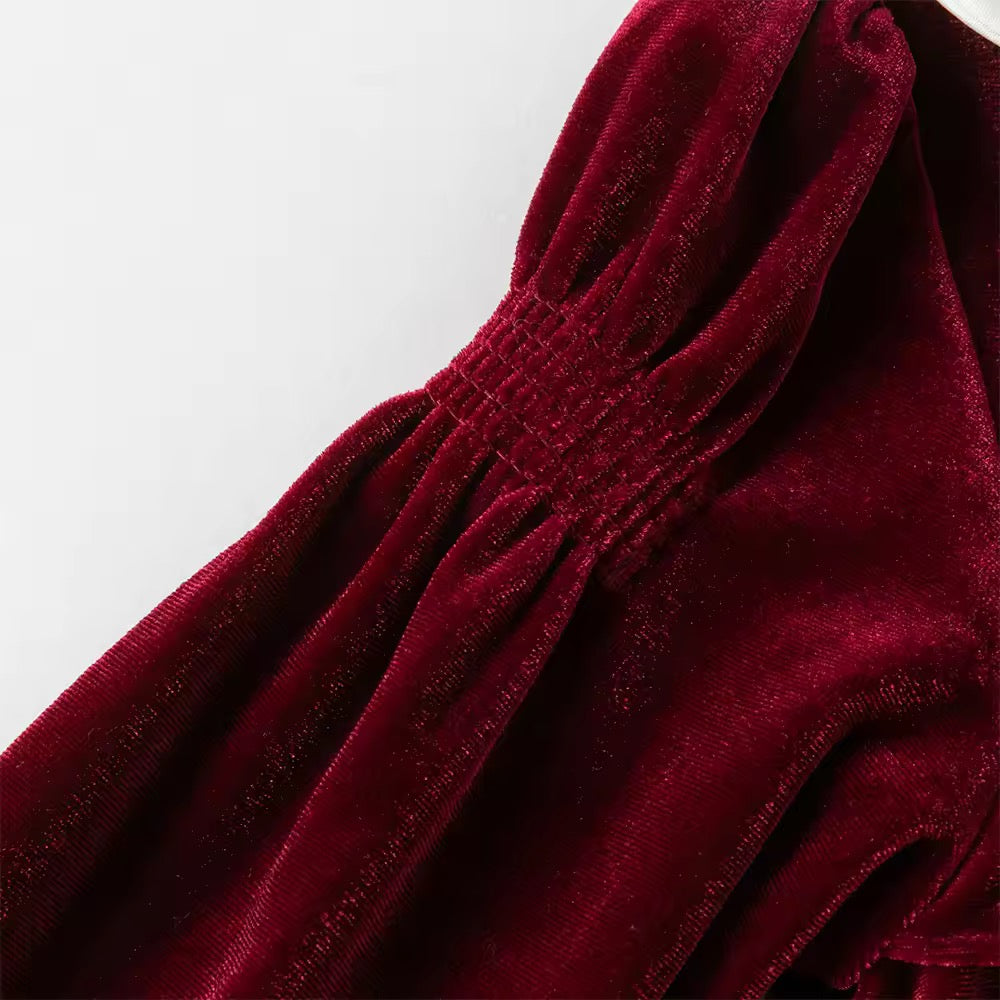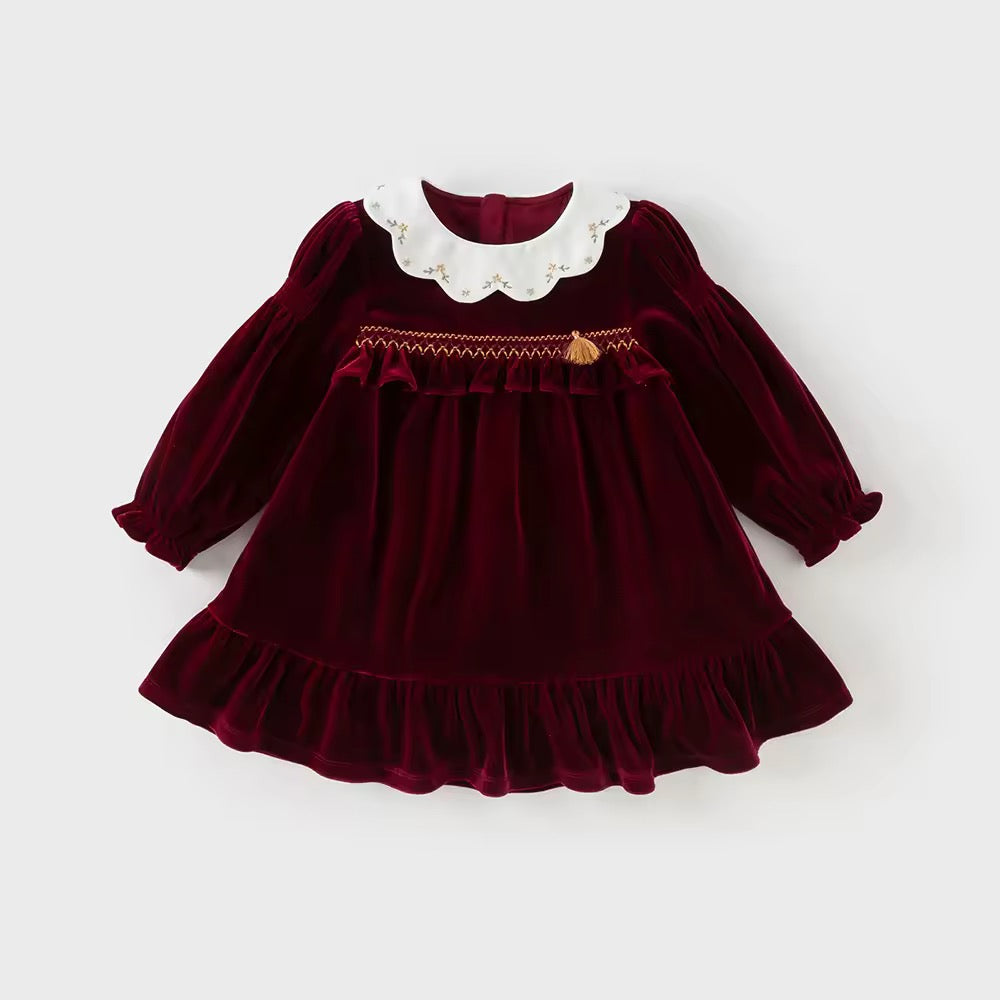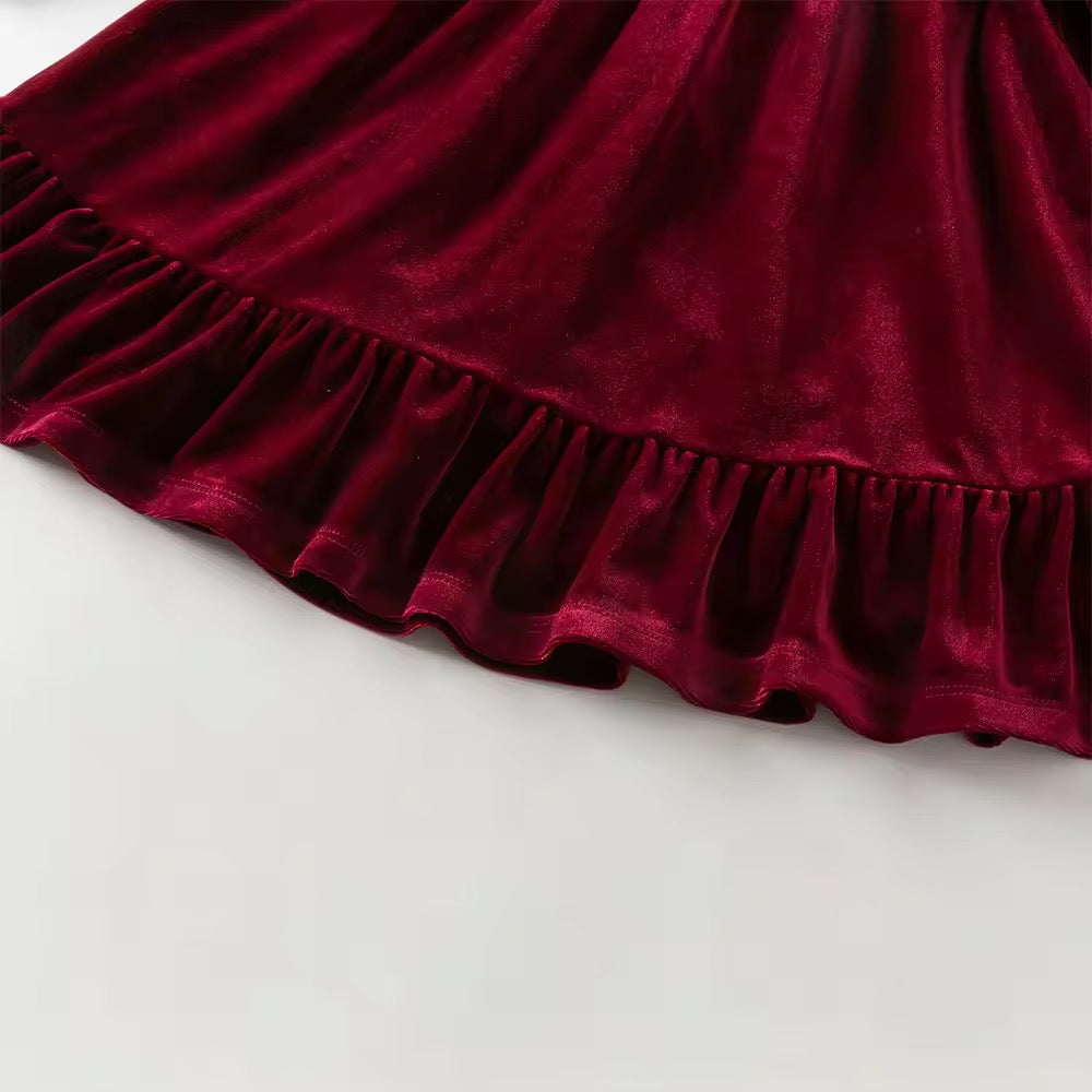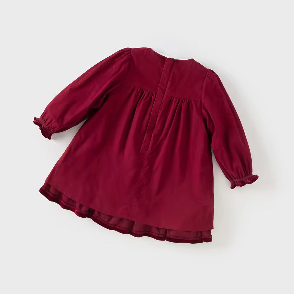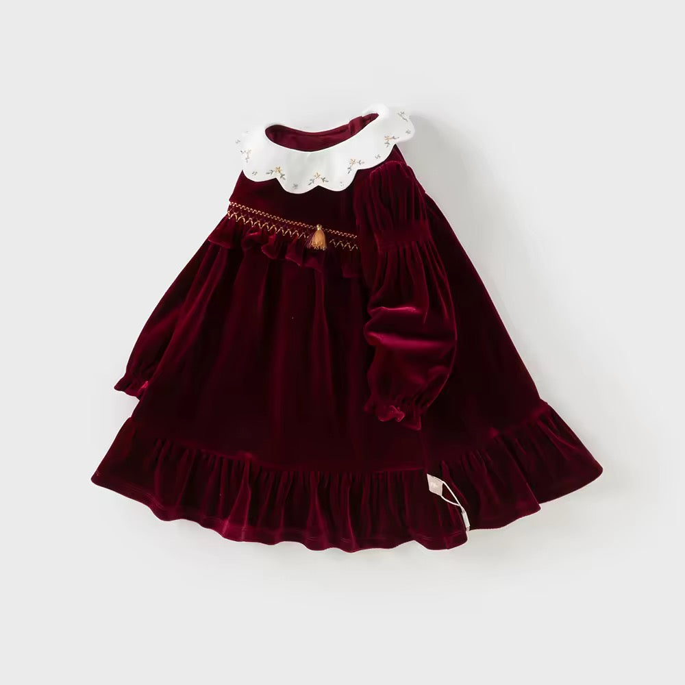 【予約】dave&bella デイブベラ 刺繍襟ワインレッドベロアワンピース DB3253130