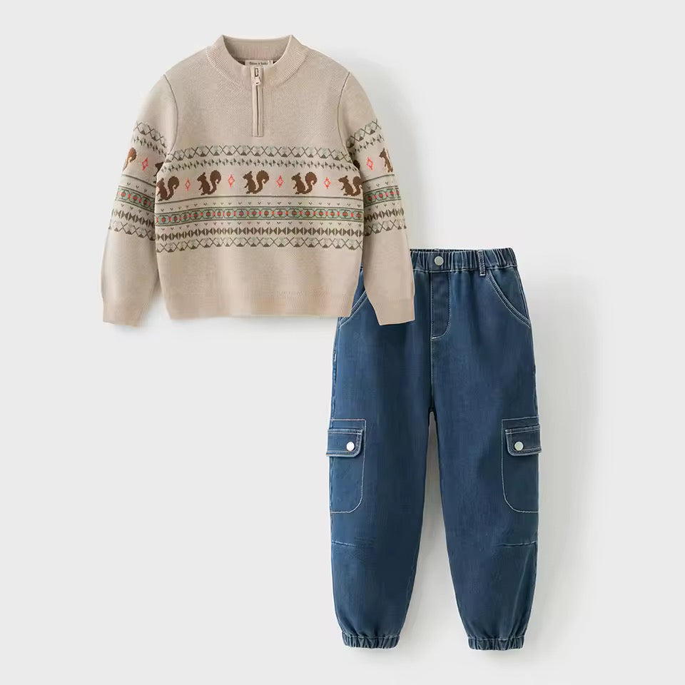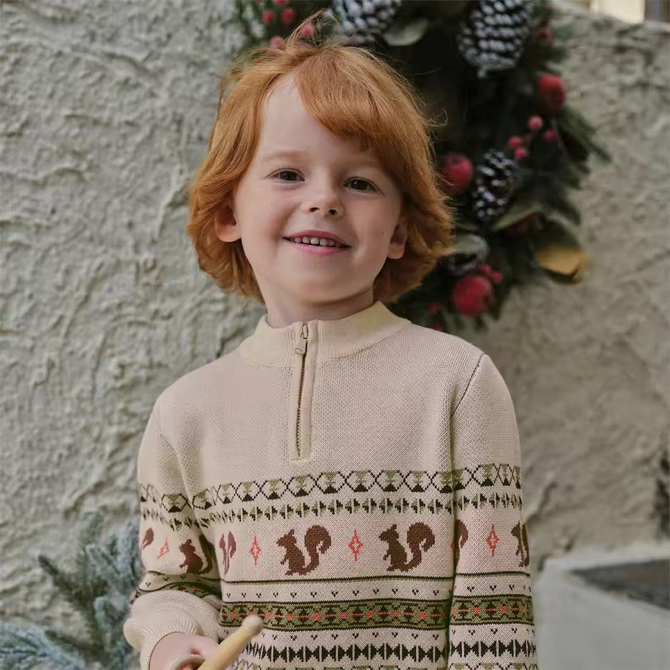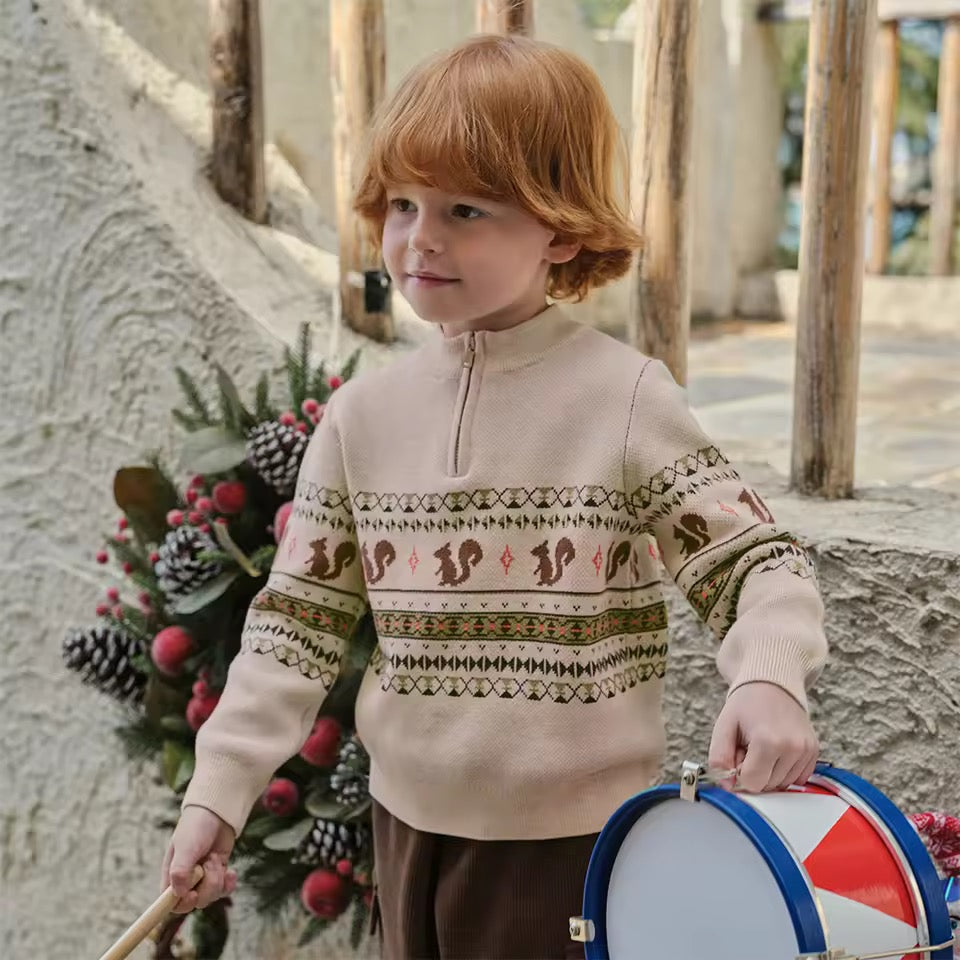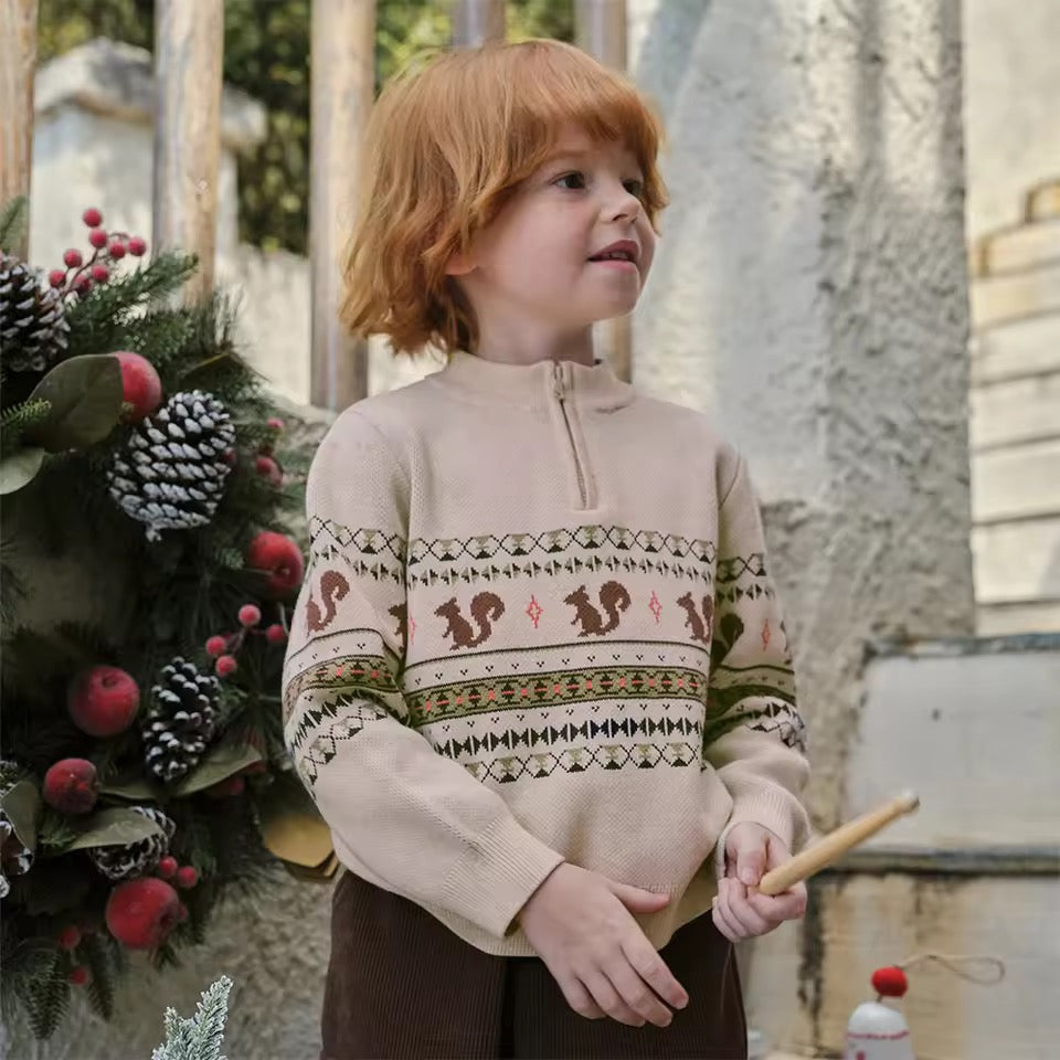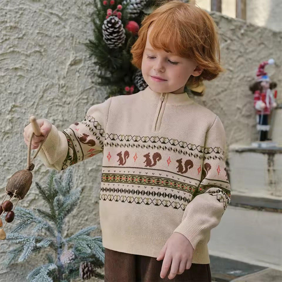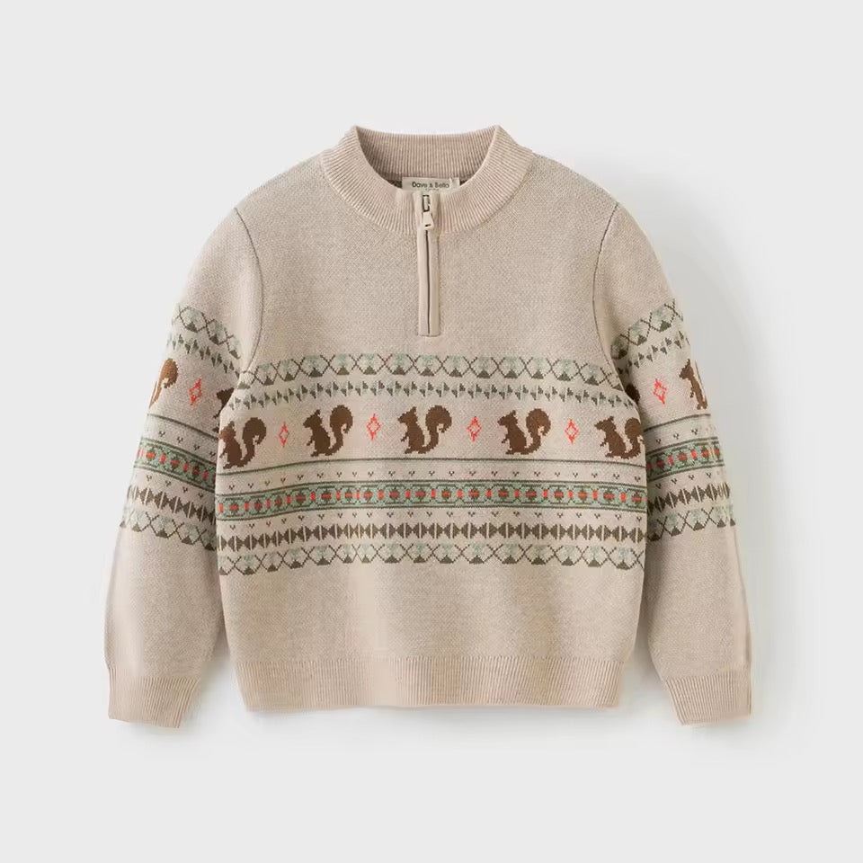 【予約】dave&bella デイブベラ リスデザインハーフジップウール混セーター DK4254671