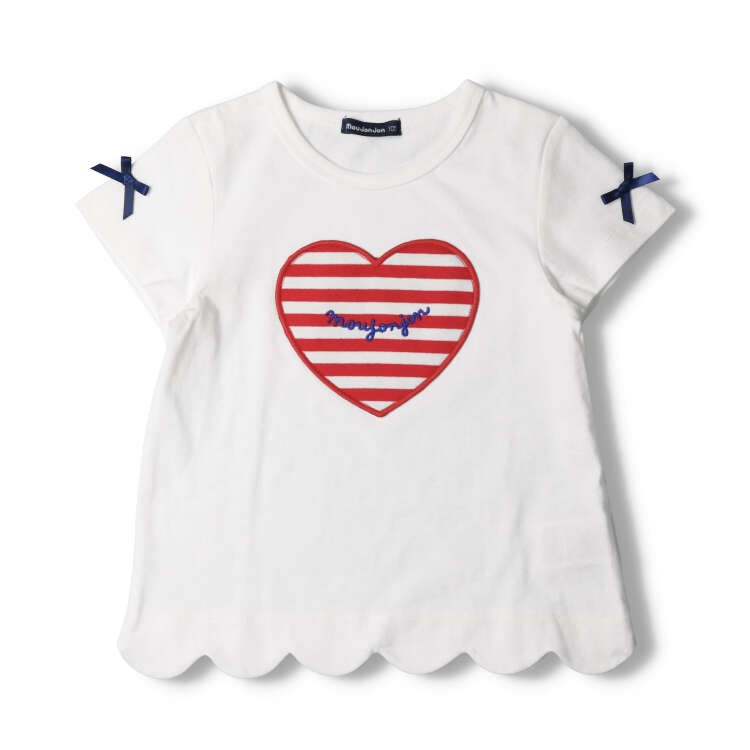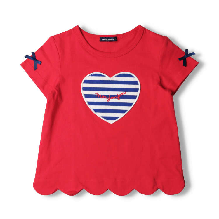 moujonjon ボーダーハートスカラップ半袖Tシャツ