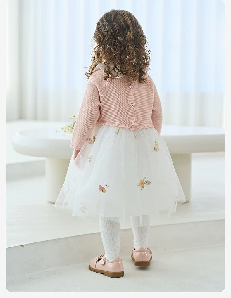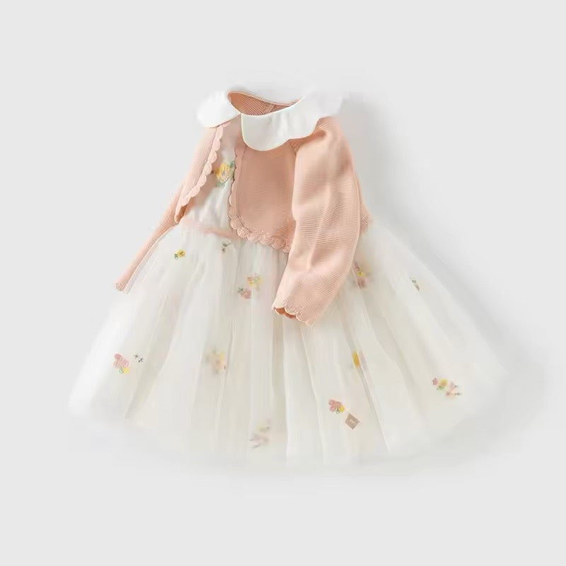 dave&bella デイブベラ カーディガンドッキングフラワー刺繍ワンピース DB1250496
