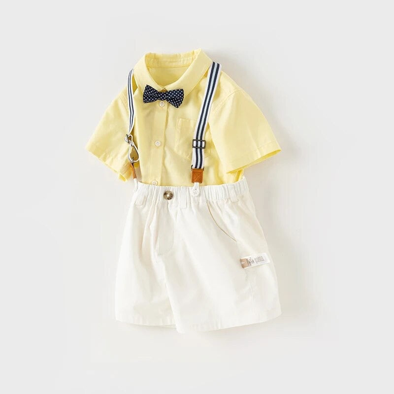 dave&bella デイブベラ ボウタイ付きイエローシャツ&サスペンダーパンツセット DB2241260