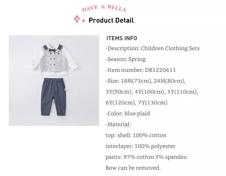 dave&bella Dave Bella Gray Check Vest Docking Dress Setup DB1220611