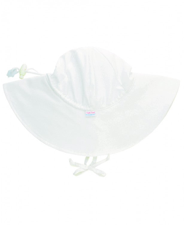 It comes with a chin strap and the head circumference can be adjusted so you don't have to worry about it flying off.