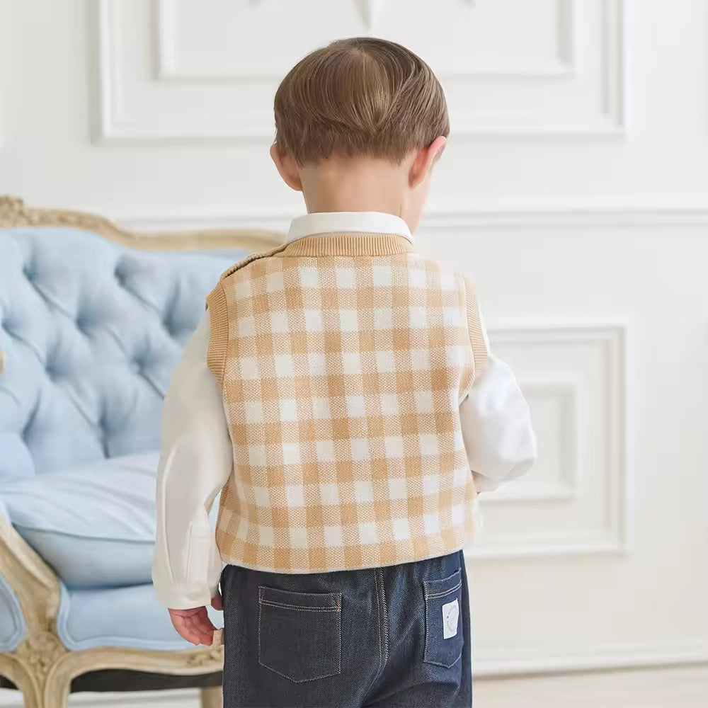 【予約】dave&bella デイブベラ ベージュチェックベスト DB3252927