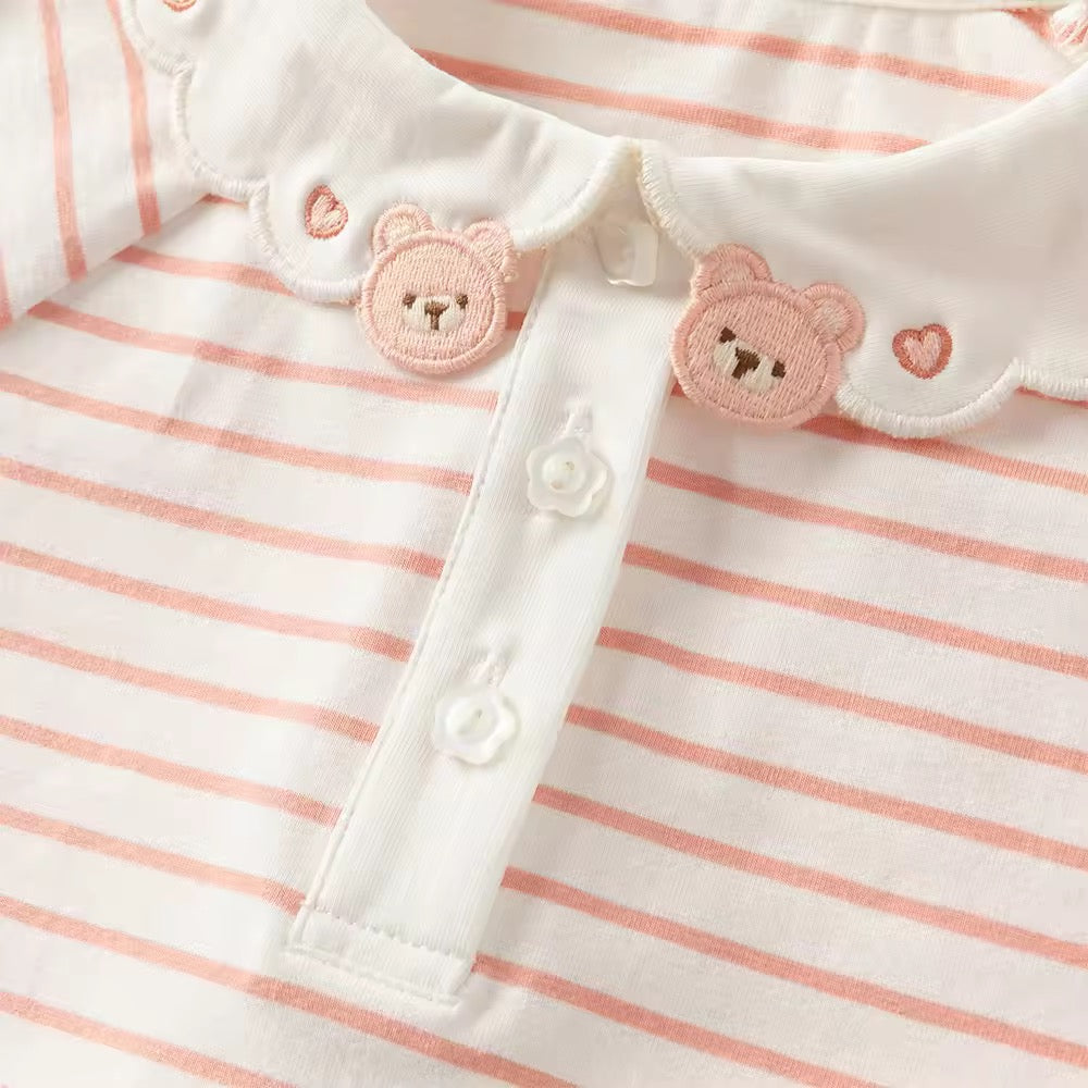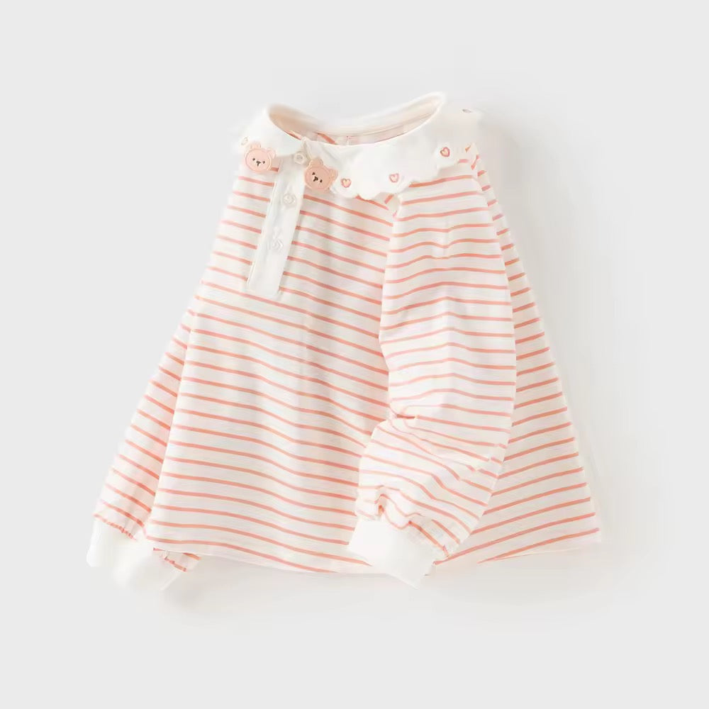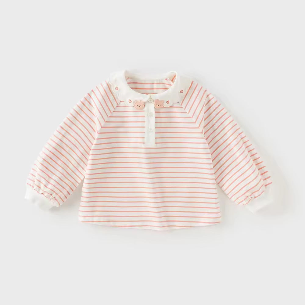 【予約】dave&bella デイブベラ くまちゃん刺繍襟ボーダートップス DB3253008