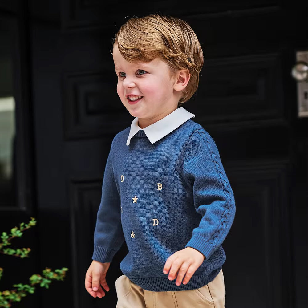 【予約】dave&bella デイブベラ ロゴ刺繍襟付きニットトップス DB4253627