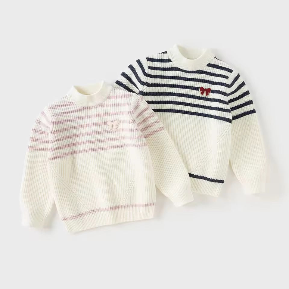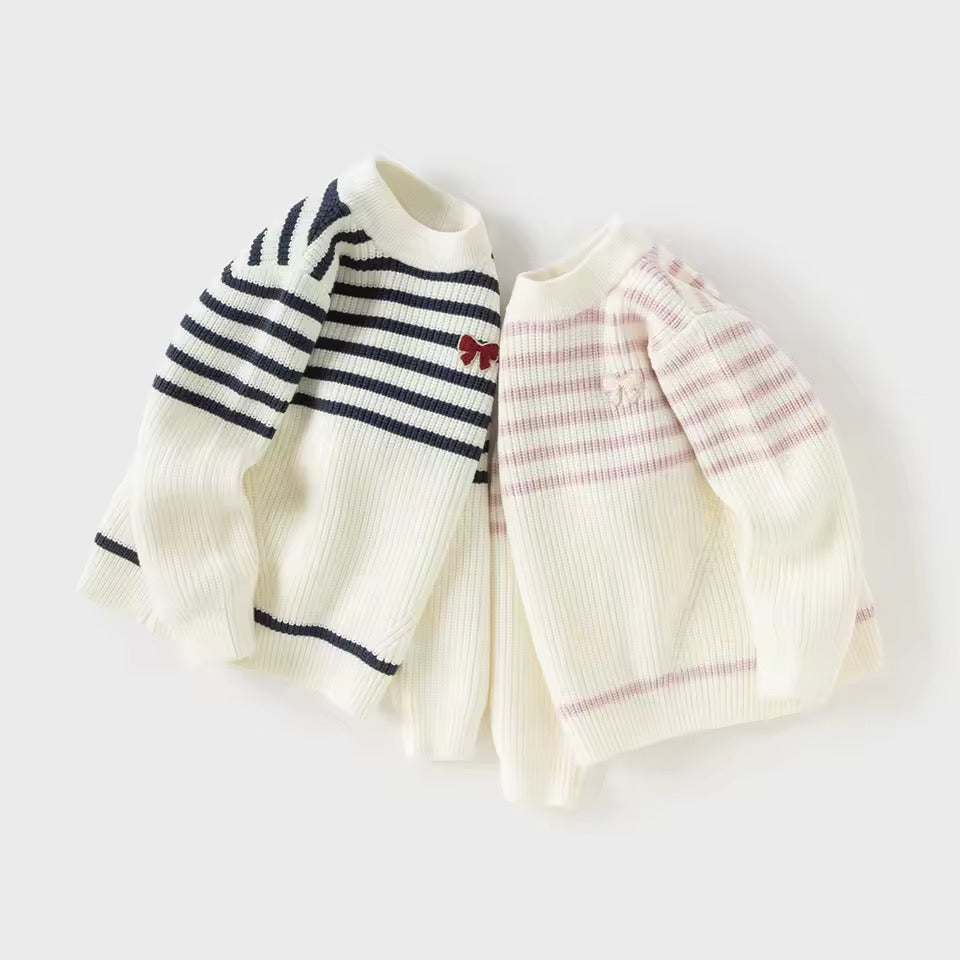【予約】dave&bella デイブベラ リボン刺繍ボーダートップス DB4253817