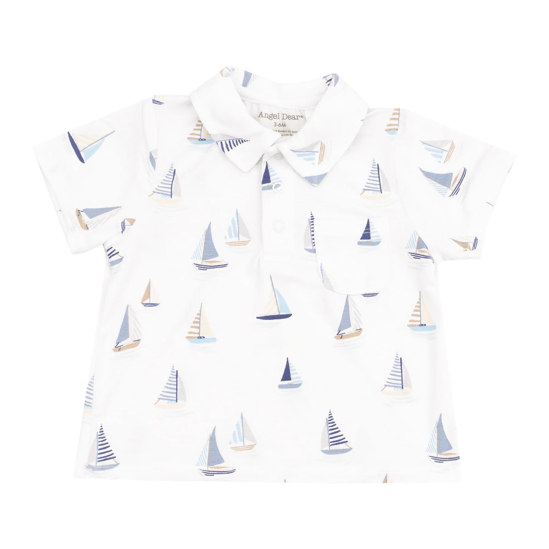 ANGEL DEAR Polo Shirt & Short - Sailboats Blue