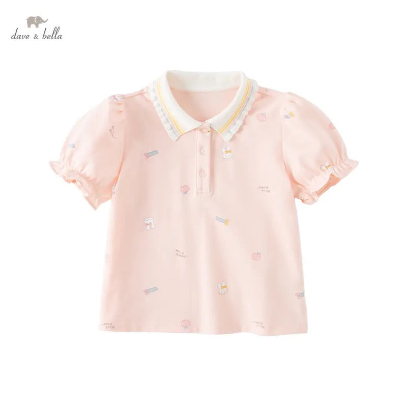 【90cm last one】dave&bella デイブベラ うさちゃんデザインパフスリーブポロシャツ DB2235519