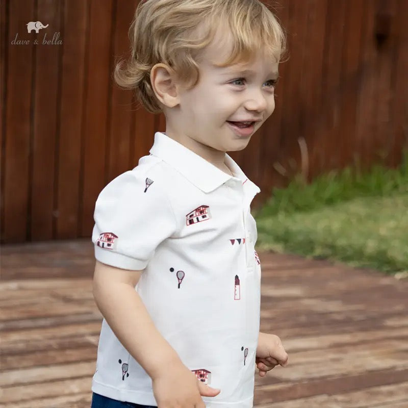 dave&bella デイブベラ イラストホワイトポロシャツ DB2235118