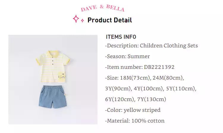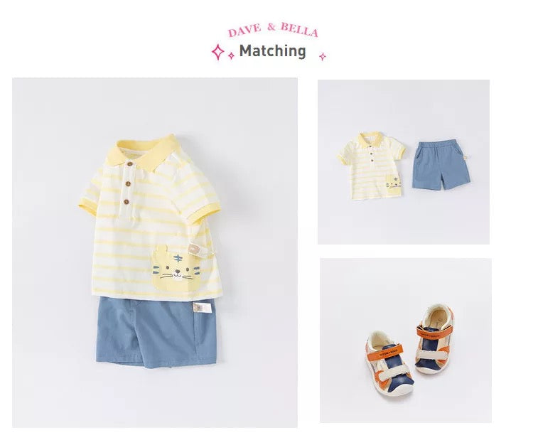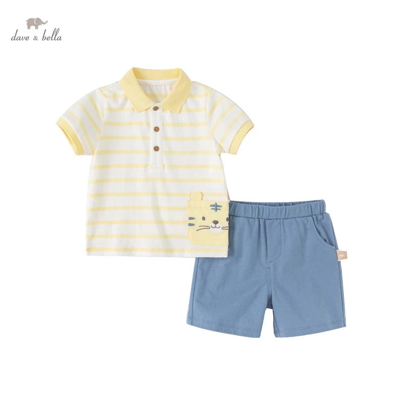 dave&bella デイブベラ タイガーポケットイエローボーダーポロシャツセットアップ DB2221392 90cm