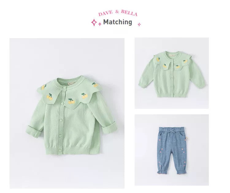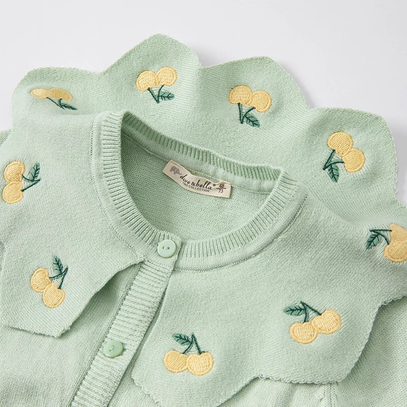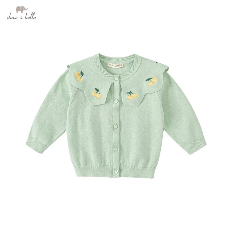 dave&bella デイブベラ チェリー刺繍ビッグカラーライトグリーンカーディガン DB1220488