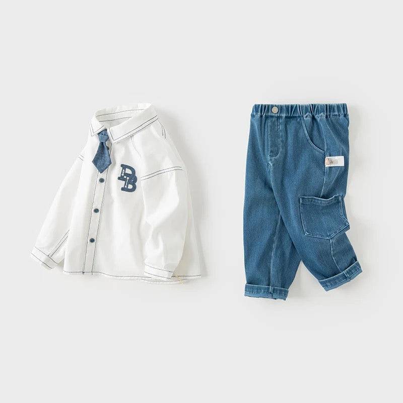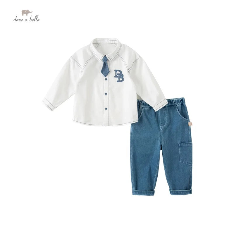 dave&bella デイブベラ ネクタイ付きロゴシャツ&ストレッチデニムパンツセット 90cm