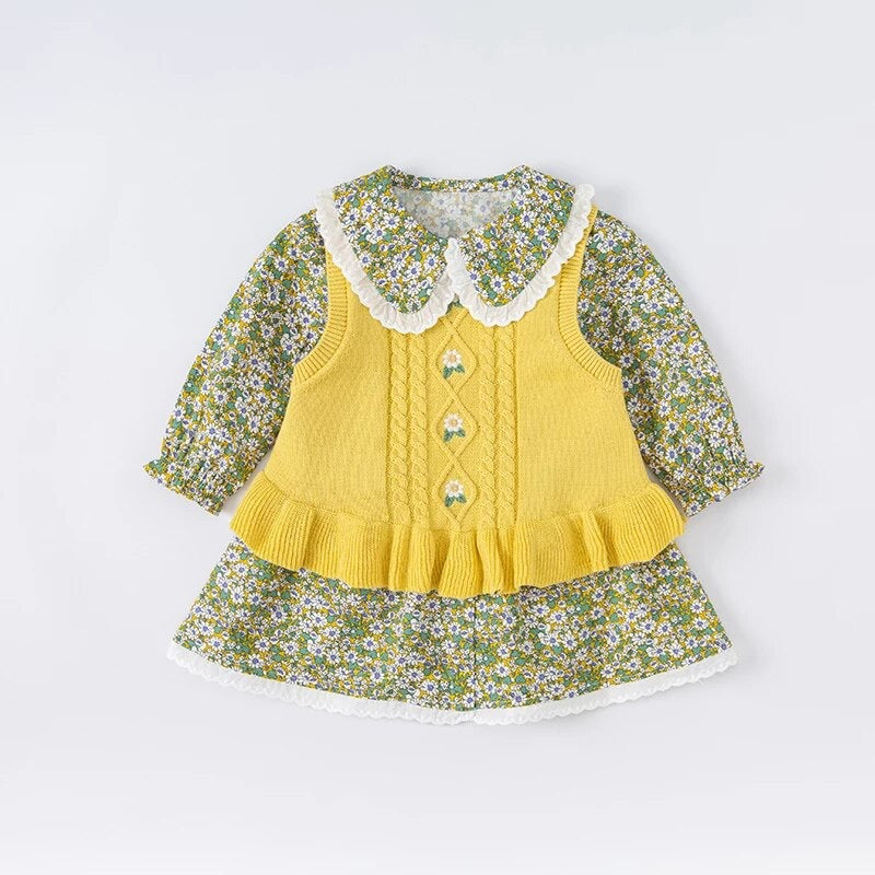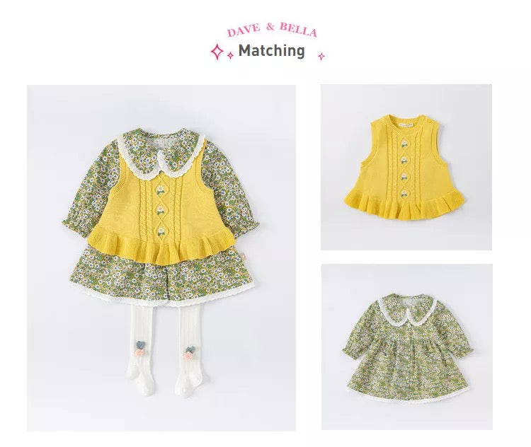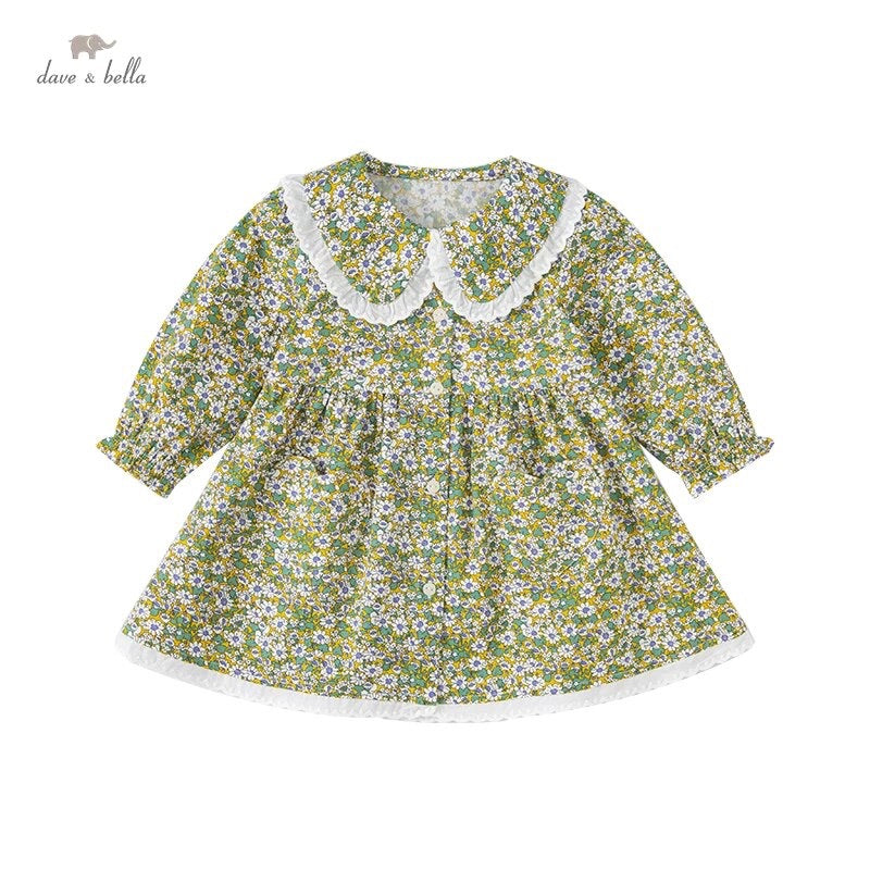 dave&bella デイブベラ ビッグカラーグリーンフローラルワンピース DB1221229