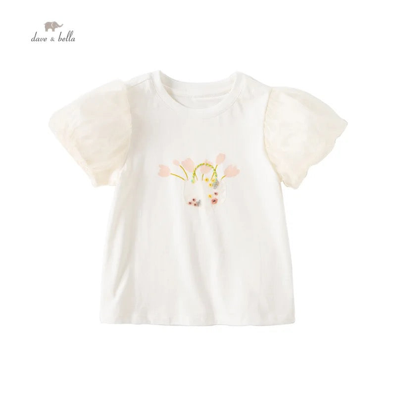 dave&bella デイブベラ フラワーバッグデザインチュールスリーブトップス DB2234138