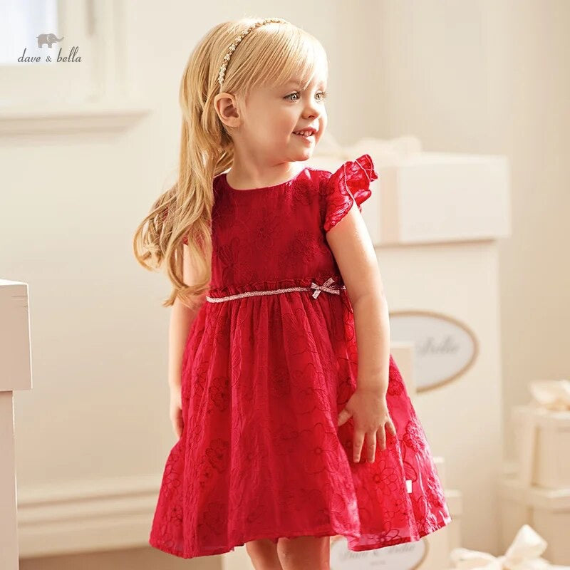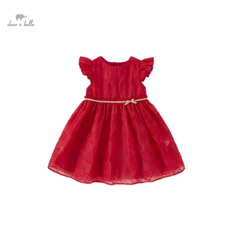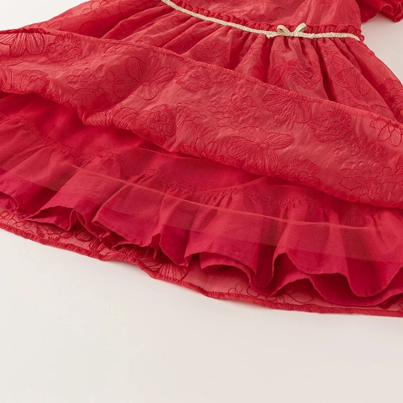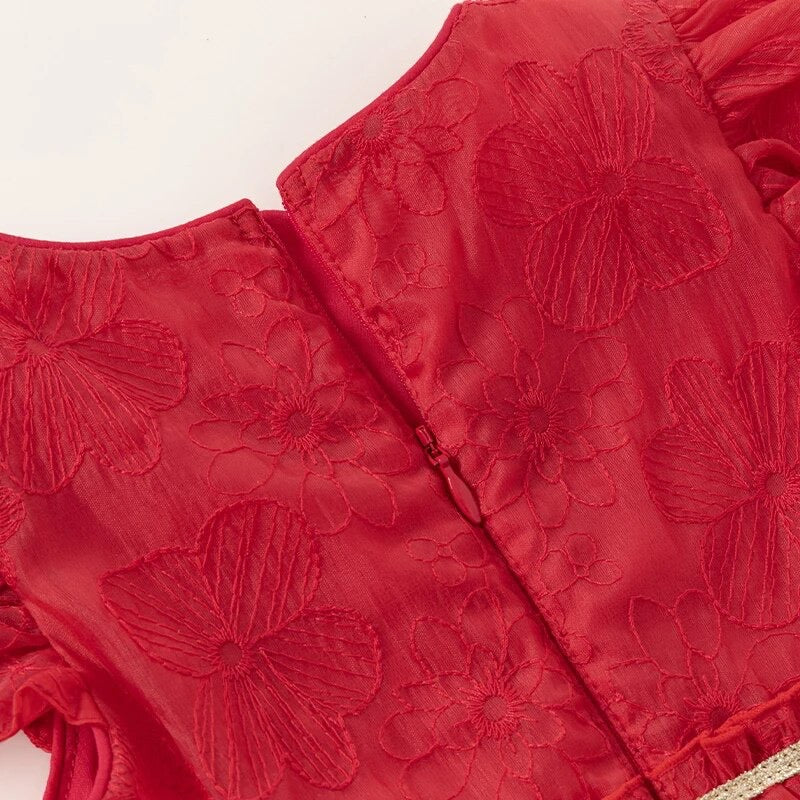 【80cm last one】dave&bella デイブベラ フラワー刺繍レッドドレス DB2241001