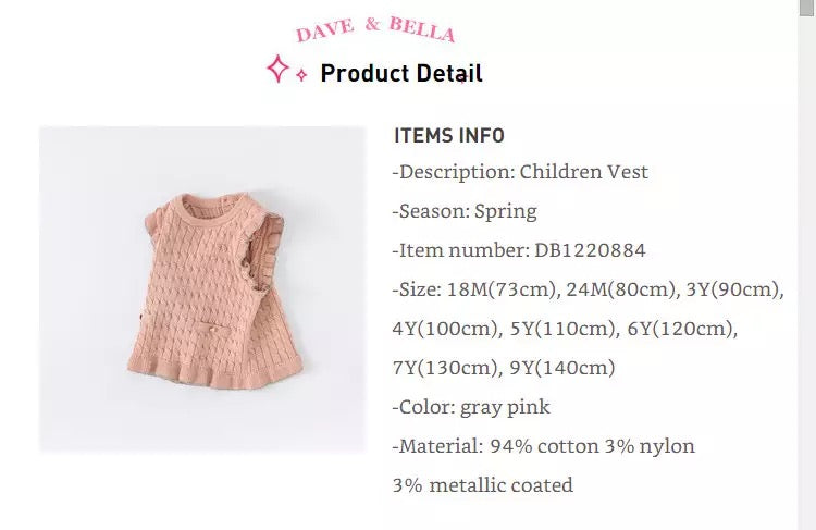 dave&bella デイブベラ フリルグレーピンクベスト DB1220884