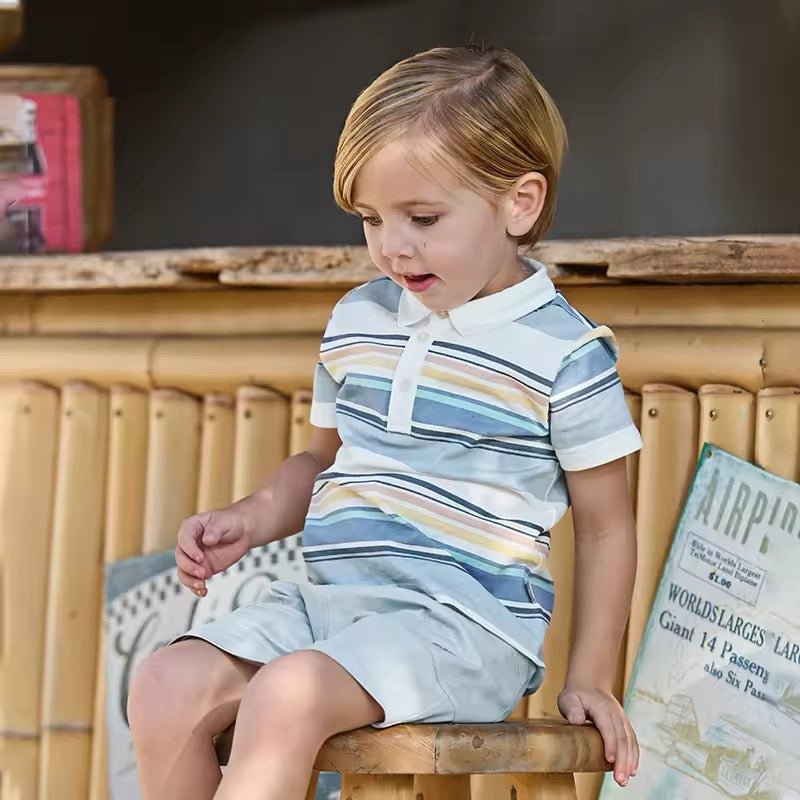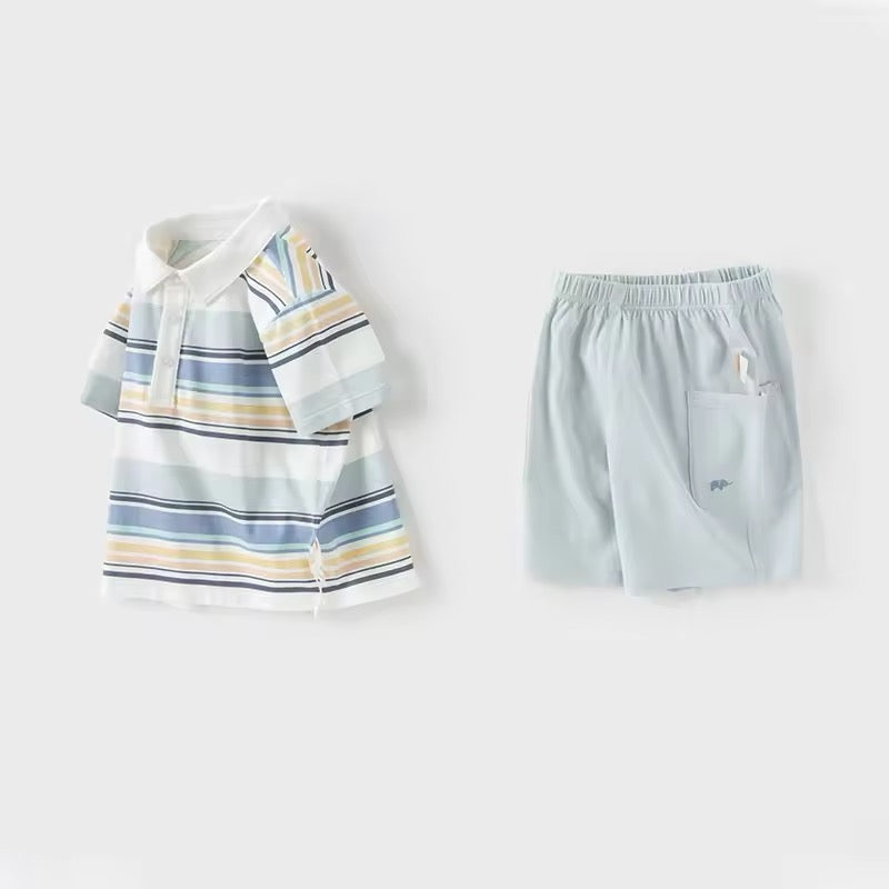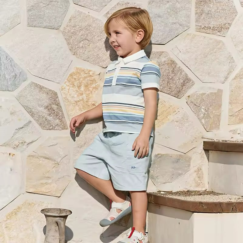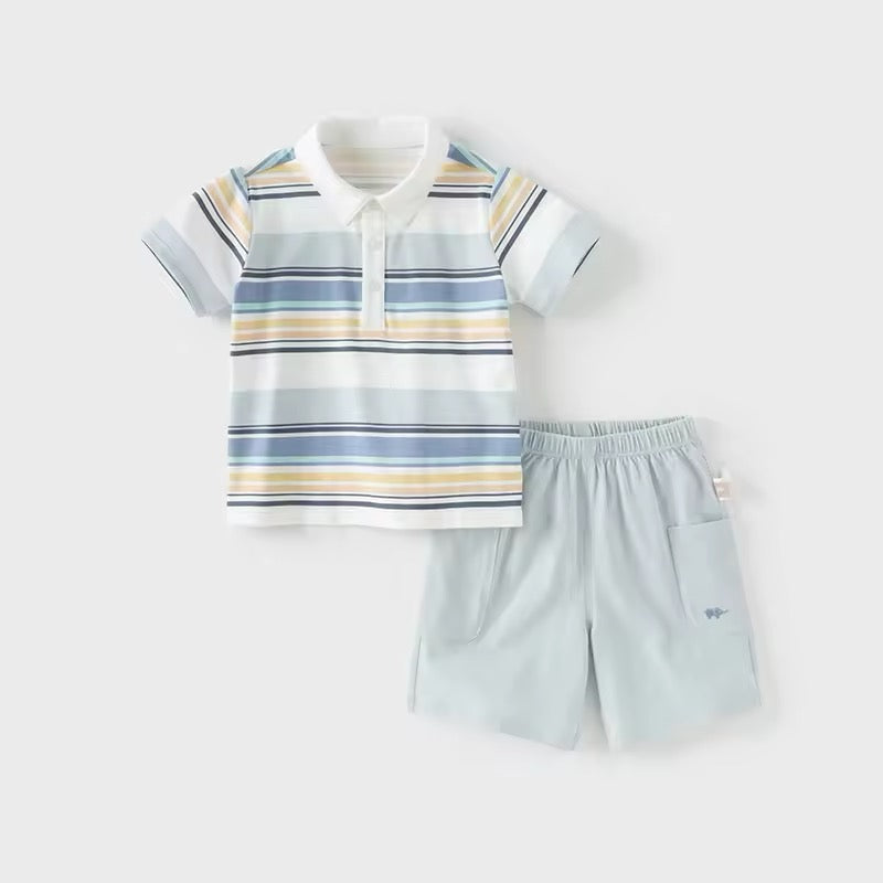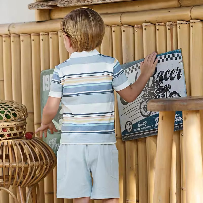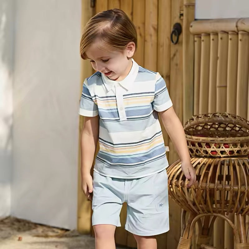 dave&bella デイブベラ ブルーオレンジボーダートップス&ハーフパンツセット DB2250220