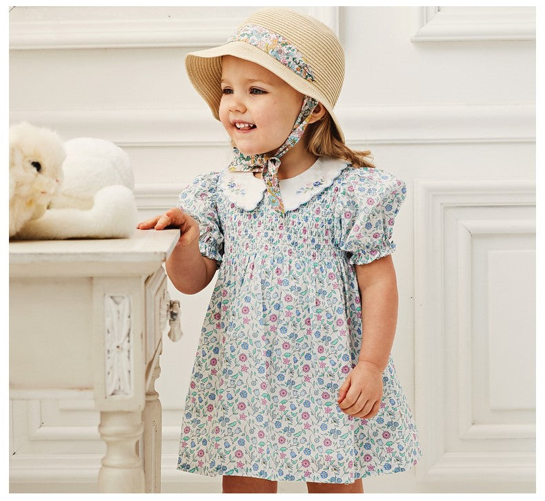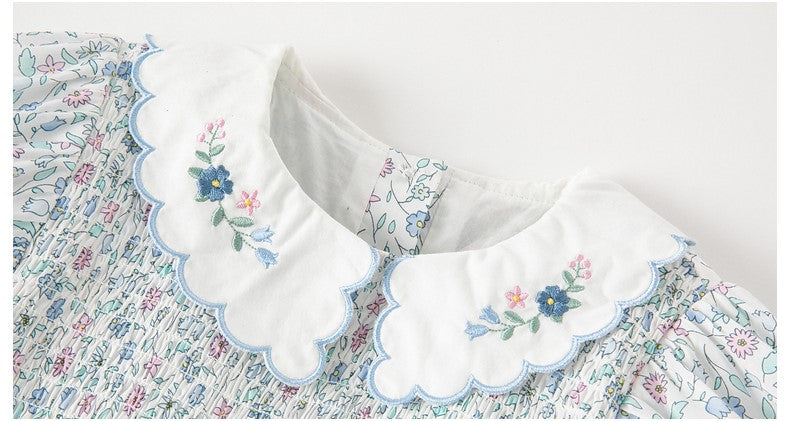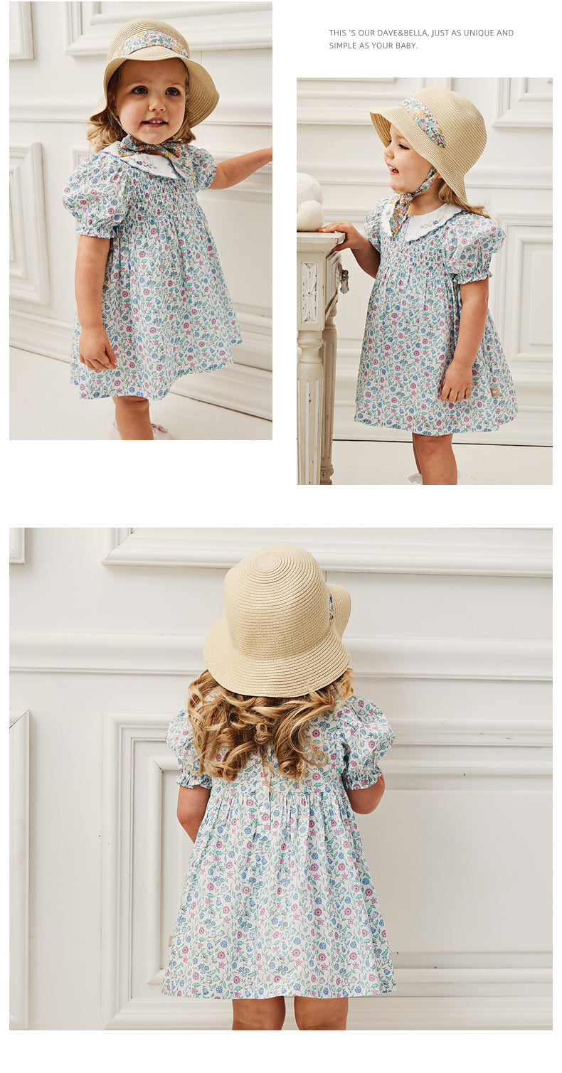 dave&bella デイブベラ ブルーフローラルスモッキングワンピース DB2235416
