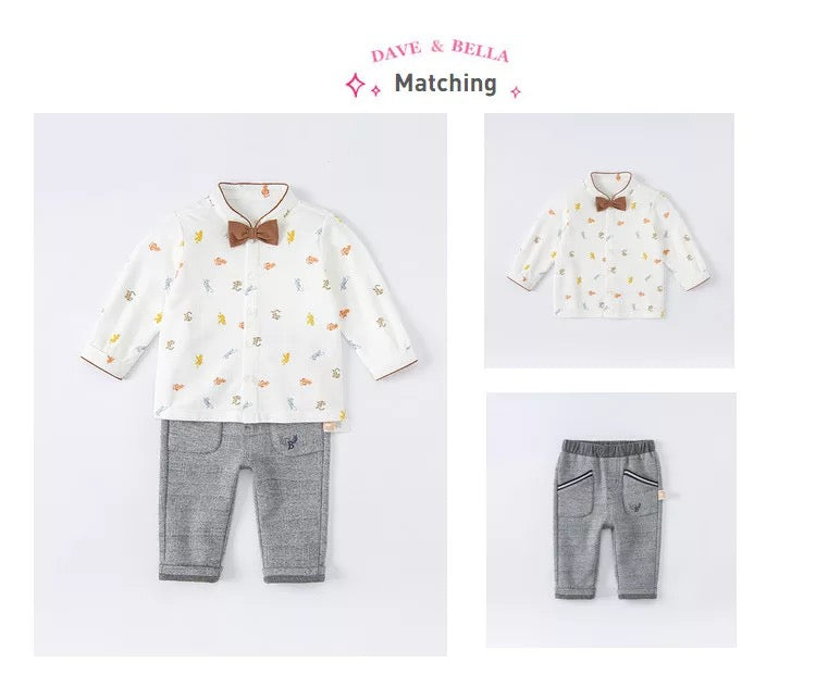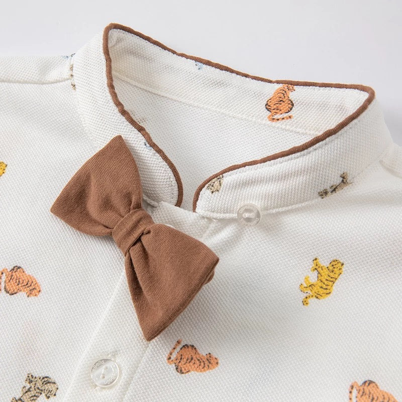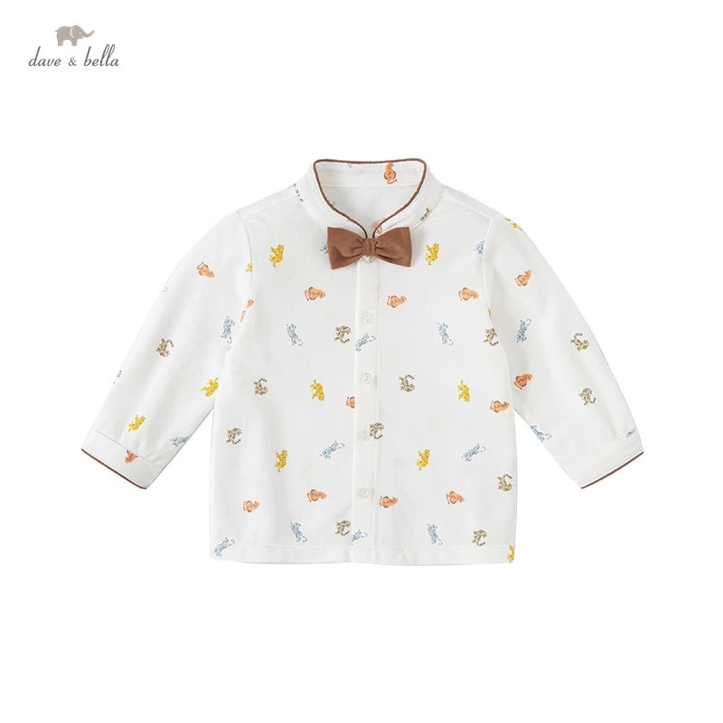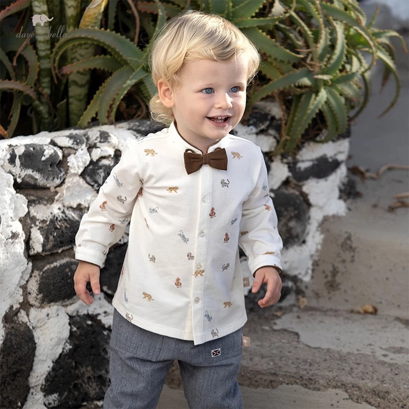 【130cm last one】dave&bella デイブベラ ボウタイ付きタイガーデザインスタンドカラーシャツ DB1220742