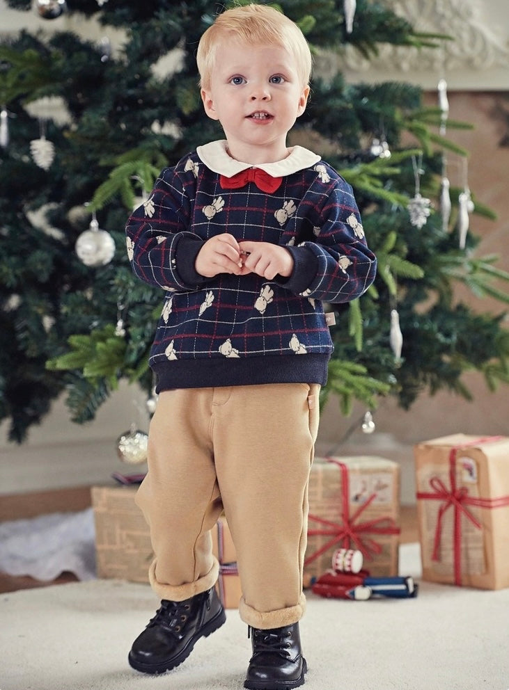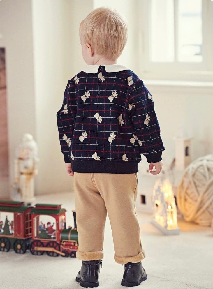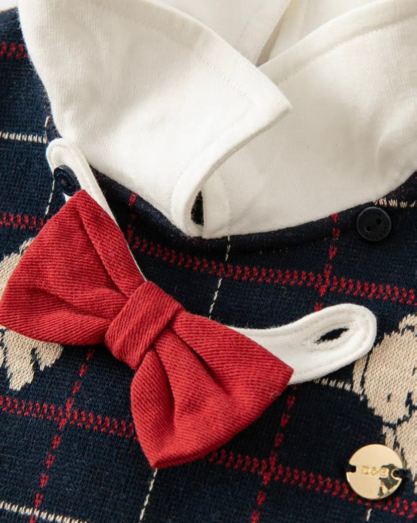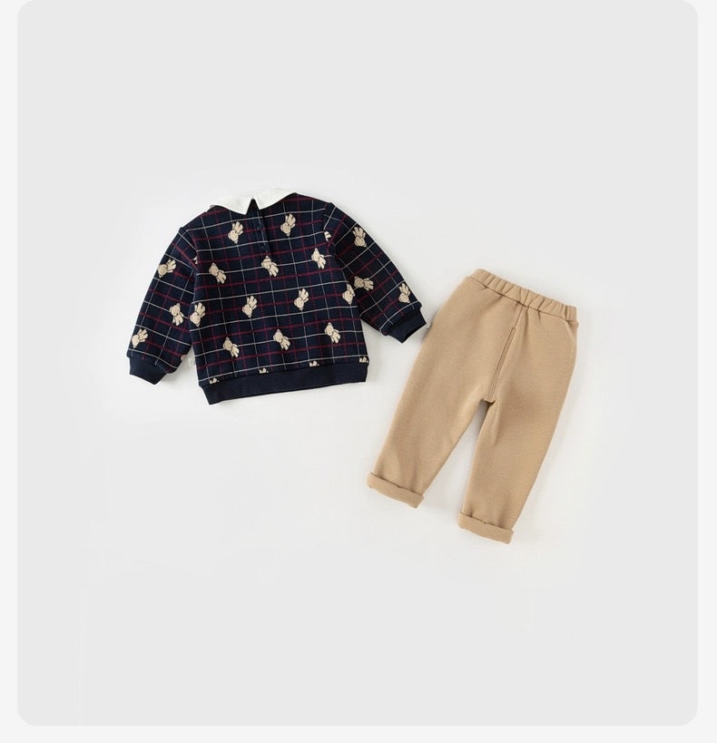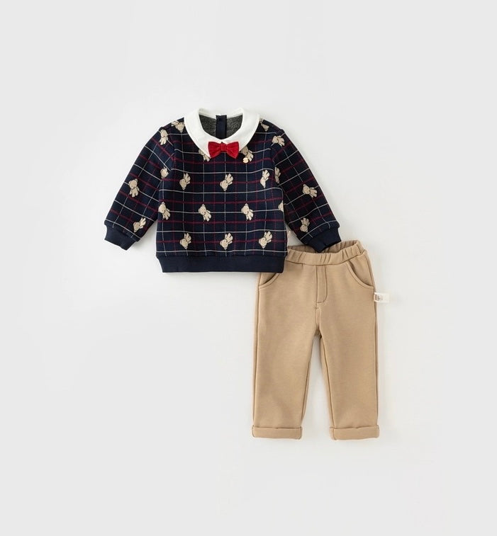 【73cm last one】dave&bella デイブベラ ボウタイ付きテディベアチェックトップス&パンツセット DB4237710