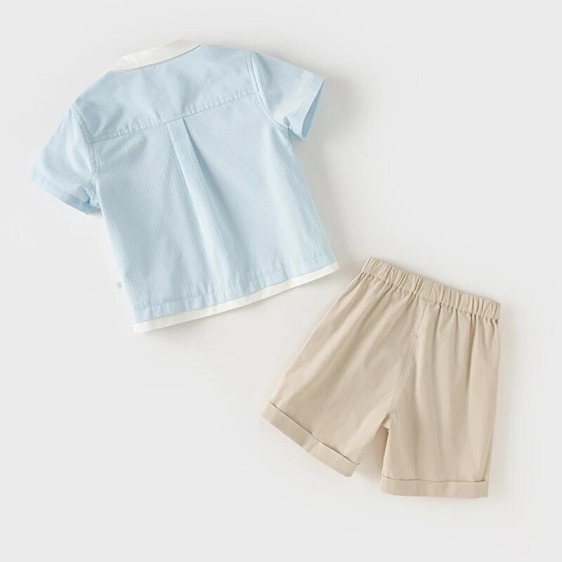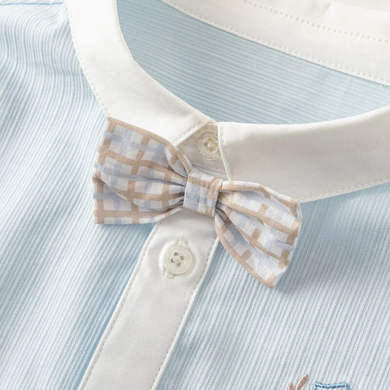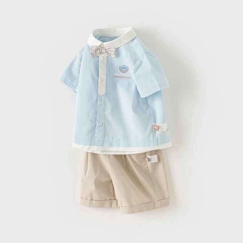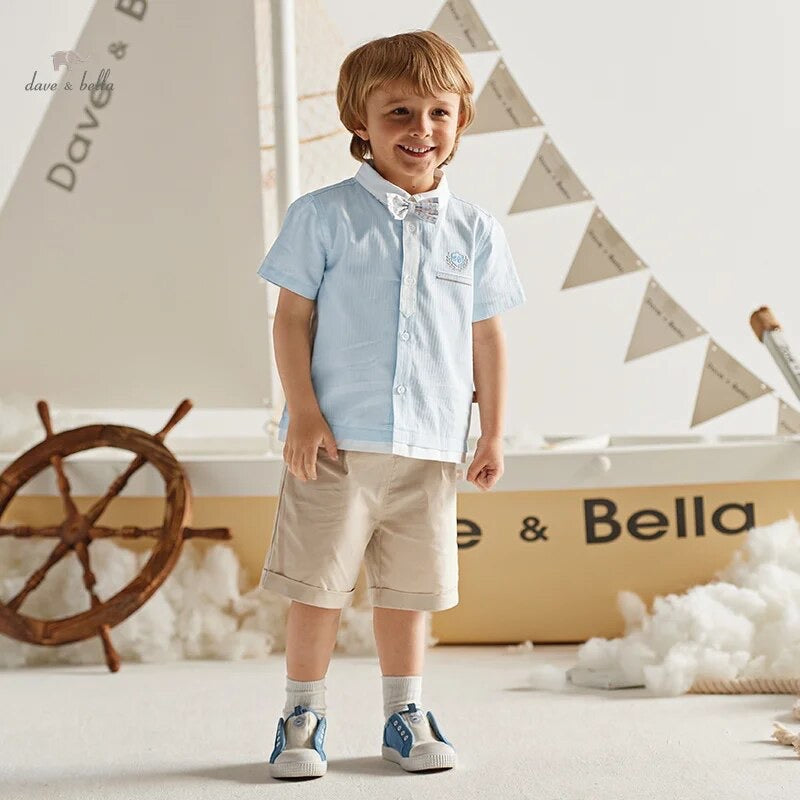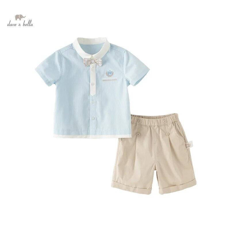 dave&bella デイブベラ ボウタイ付きライトブルートップス&ハーフパンツセット DB2241005