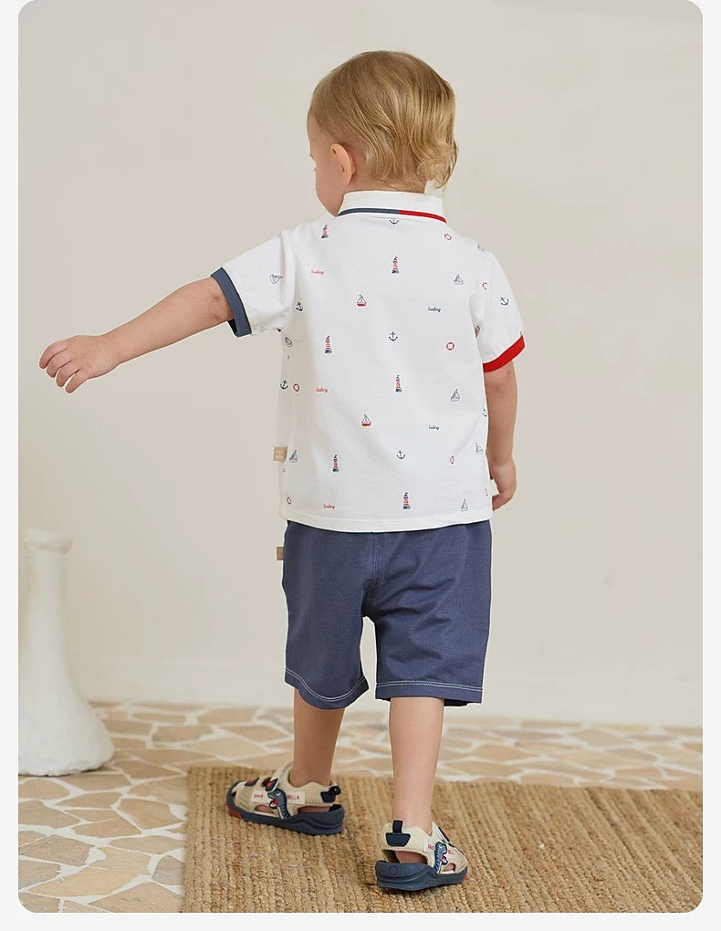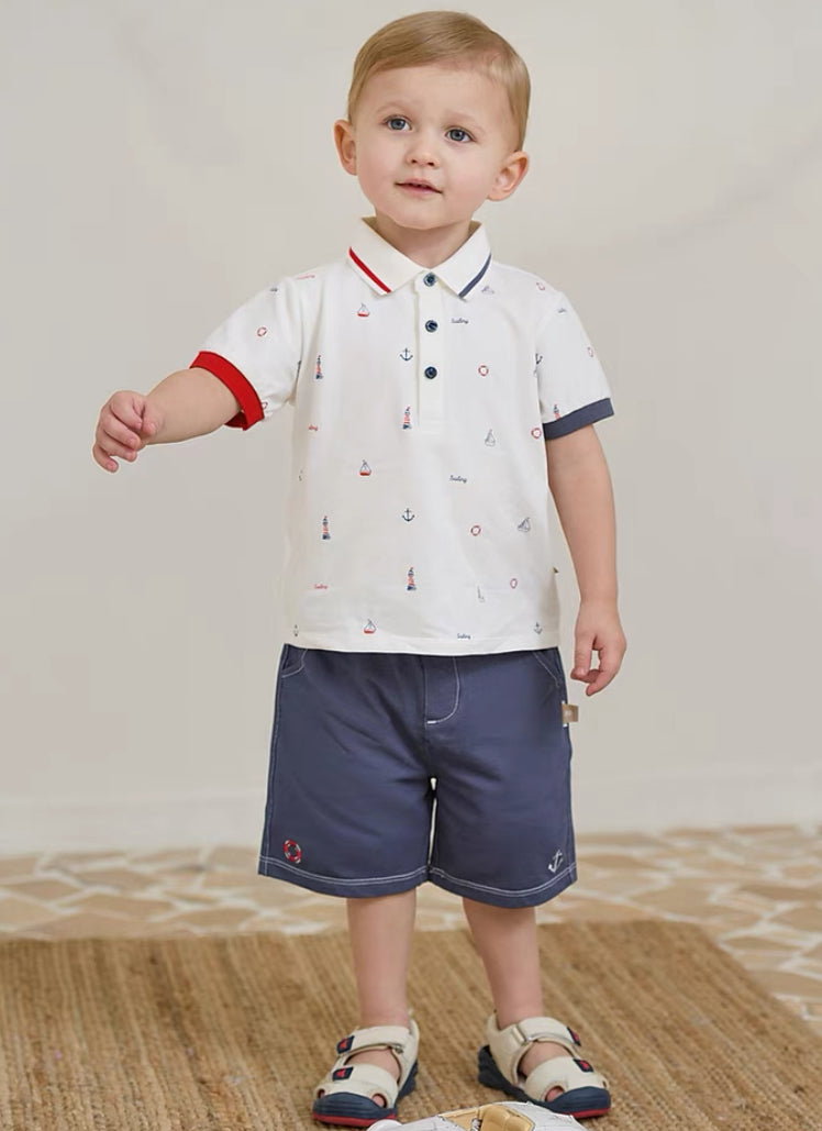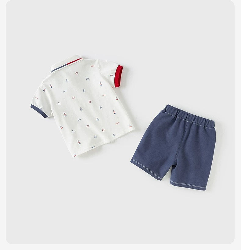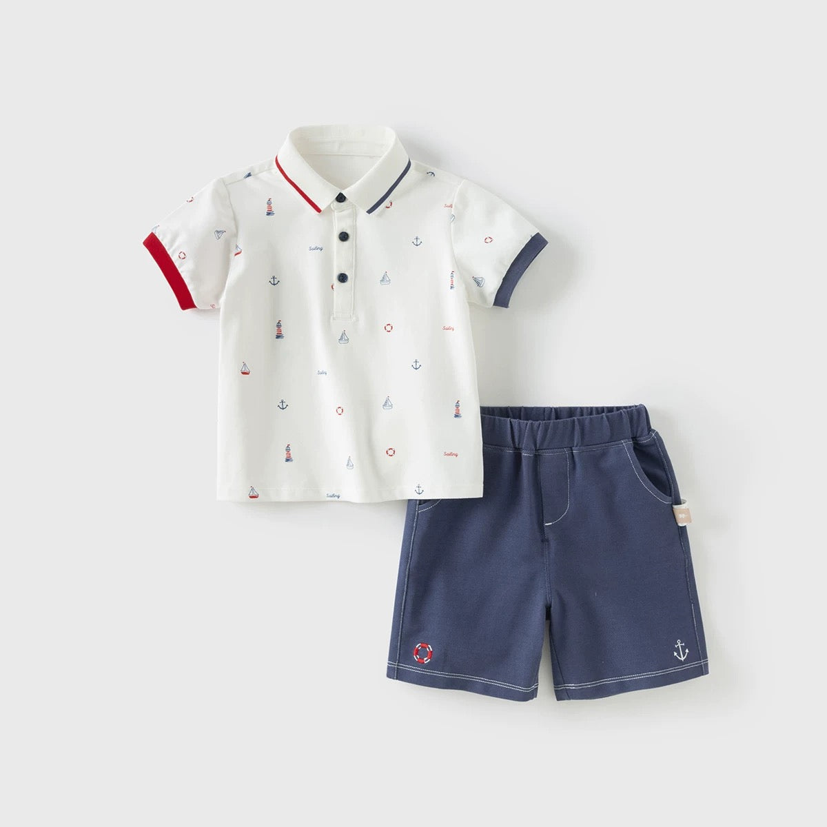 dave&bella デイブベラ マリンイラストポロシャツ&ハーフパンツセット DB2251400