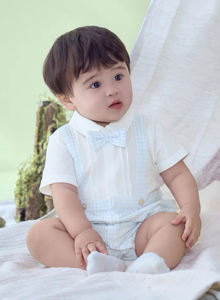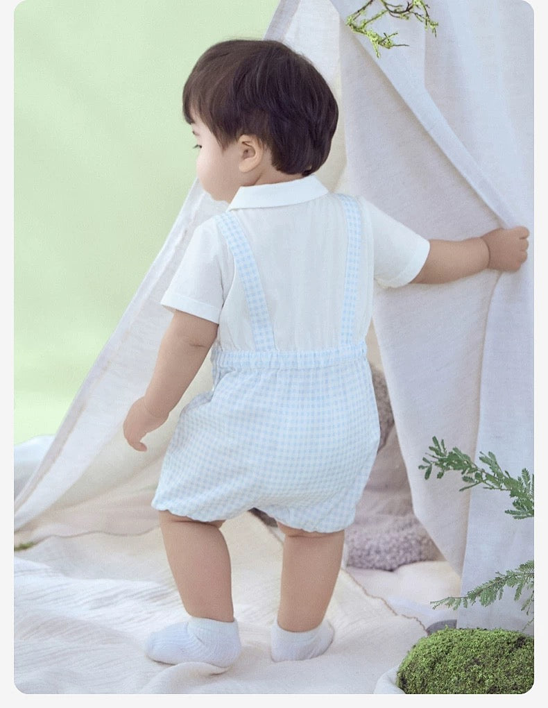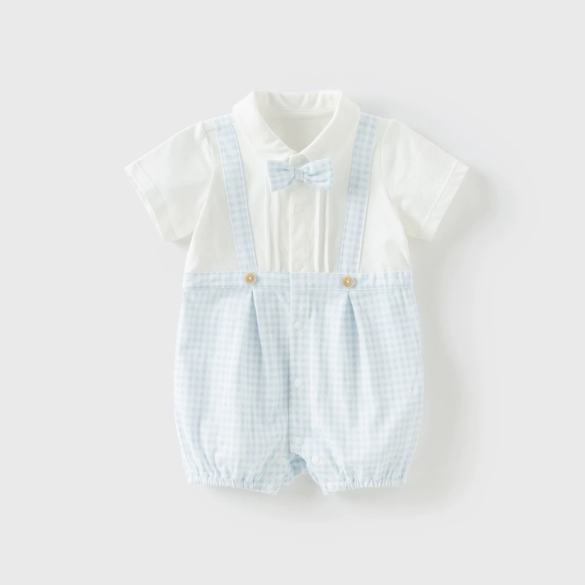 dave&bella デイブベラ ライトブルーギンガムチェックおめかしロンパース DB2251563