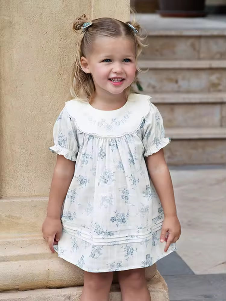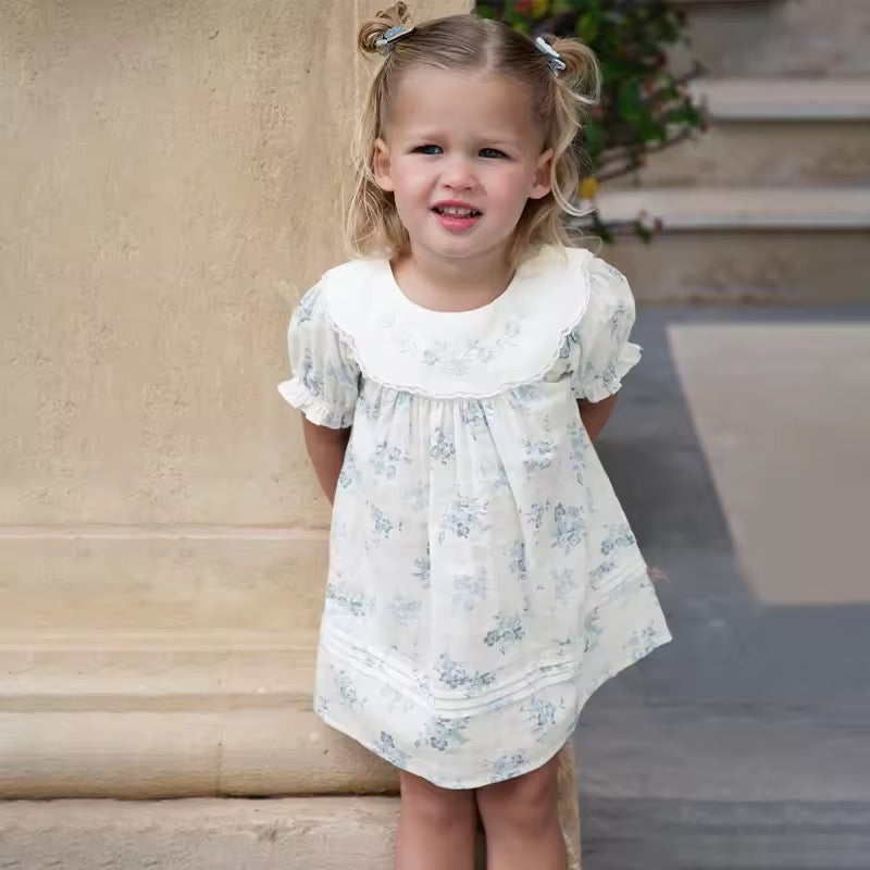 dave&bella デイブベラ 刺繍襟ブルーフローラルワンピース DB2252332