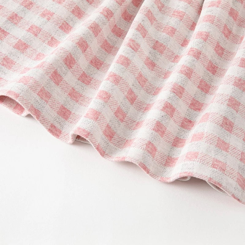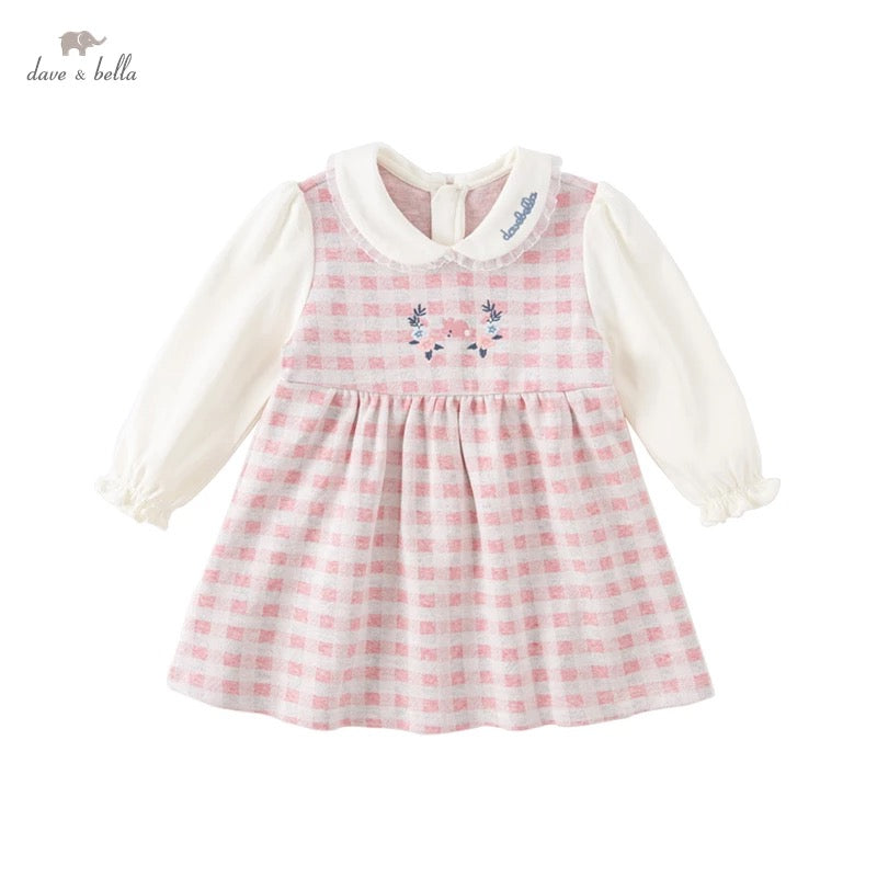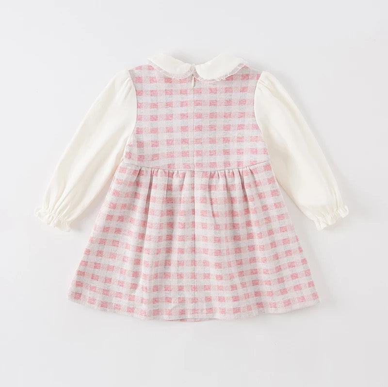 dave&bella デイブベラ フラワー&ラビット刺繍ピンクチェックワンピース DB3223117