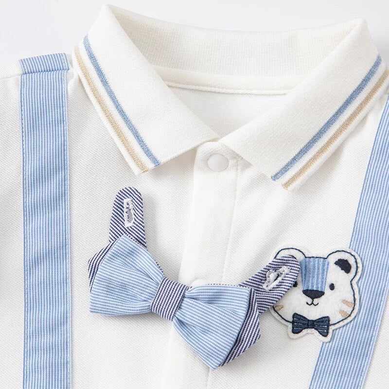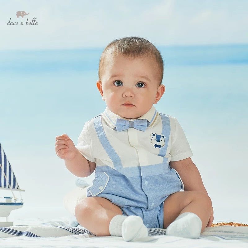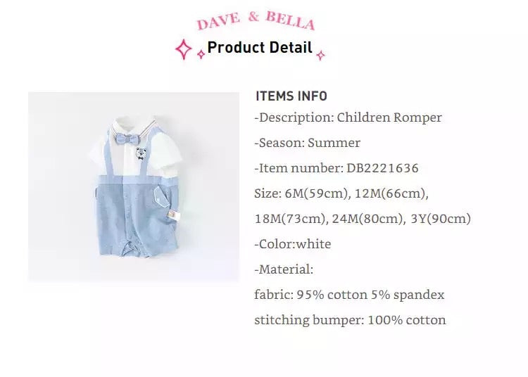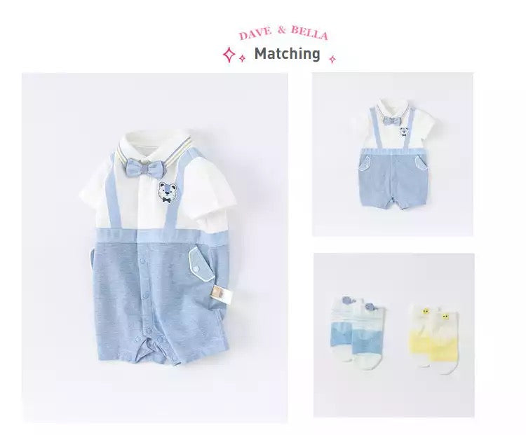 dave&bella デイブベラ ボウタイ付きライトブルーサロペットデザインロンパース DB2221636