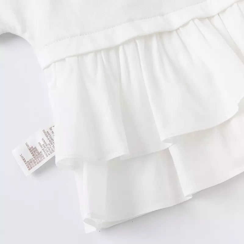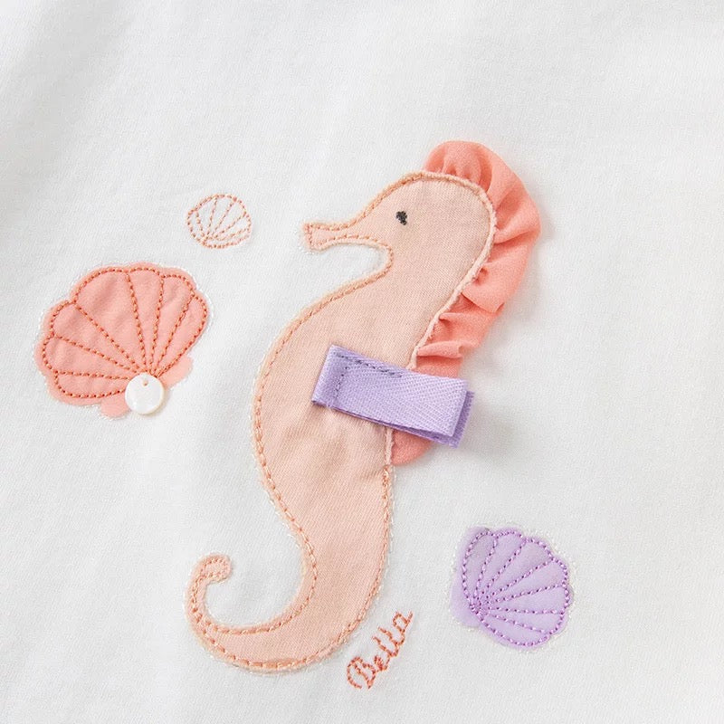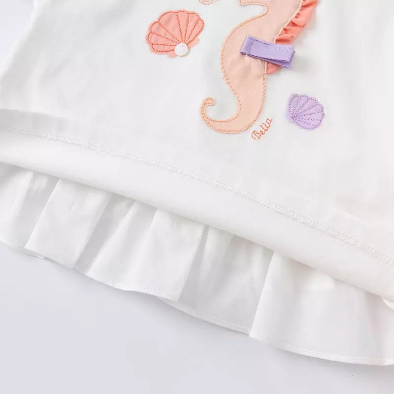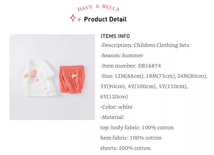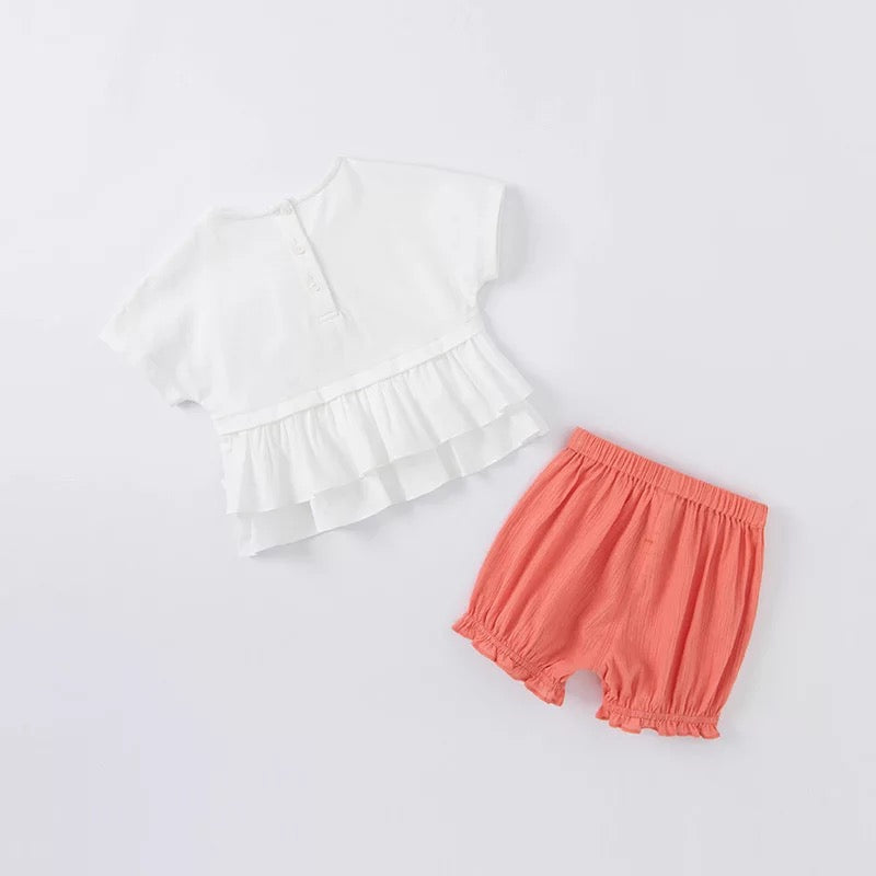 dave&bella デイブベラ バックフリルシェルタツノオトシゴトップス&オレンジパンツセット