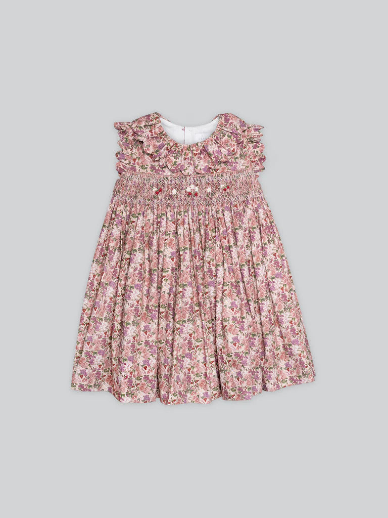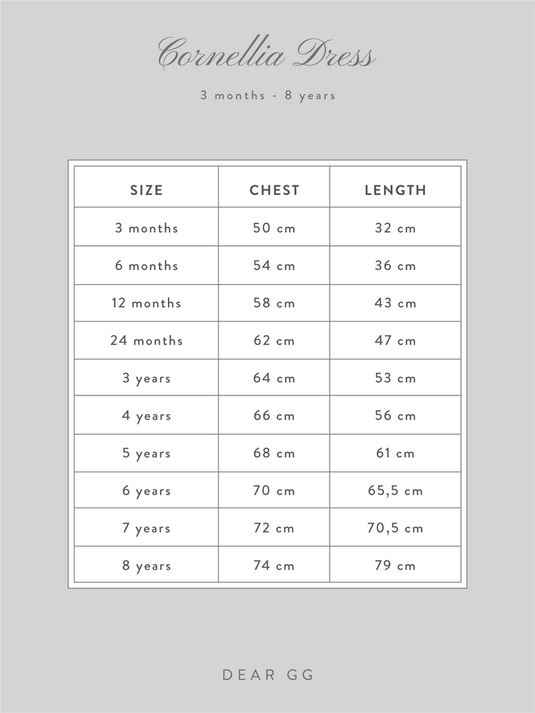 ディアGGのアイコニックなシルエット、コルネリアドレス。スカラップカラーと、胸元にあしらわれたハンドスモッキングのディテールが特徴です。お子様のコレクションに、優雅でタイムレスな魅力を添える、素晴らしい一着です。