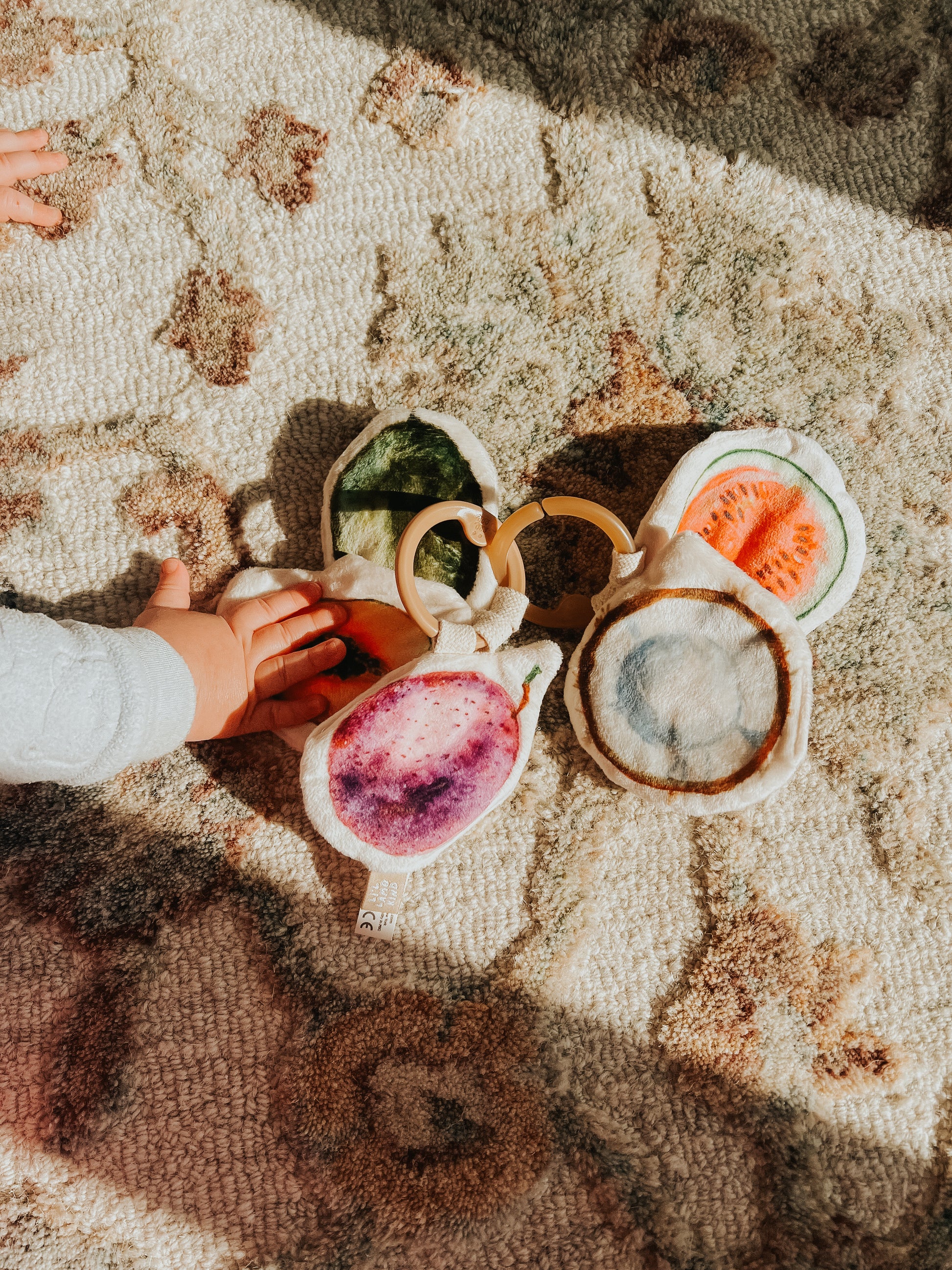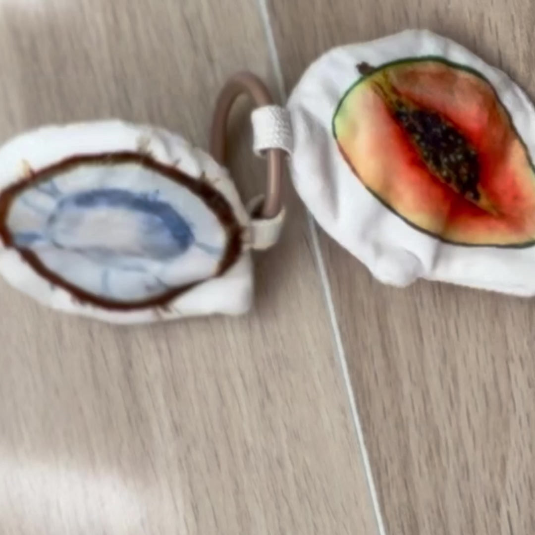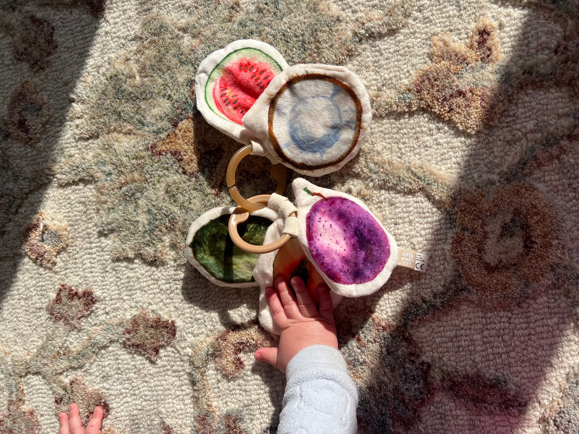 新生児から2歳頃まで、成長に寄り添うトロピカルフルーツの布おもちゃセット。