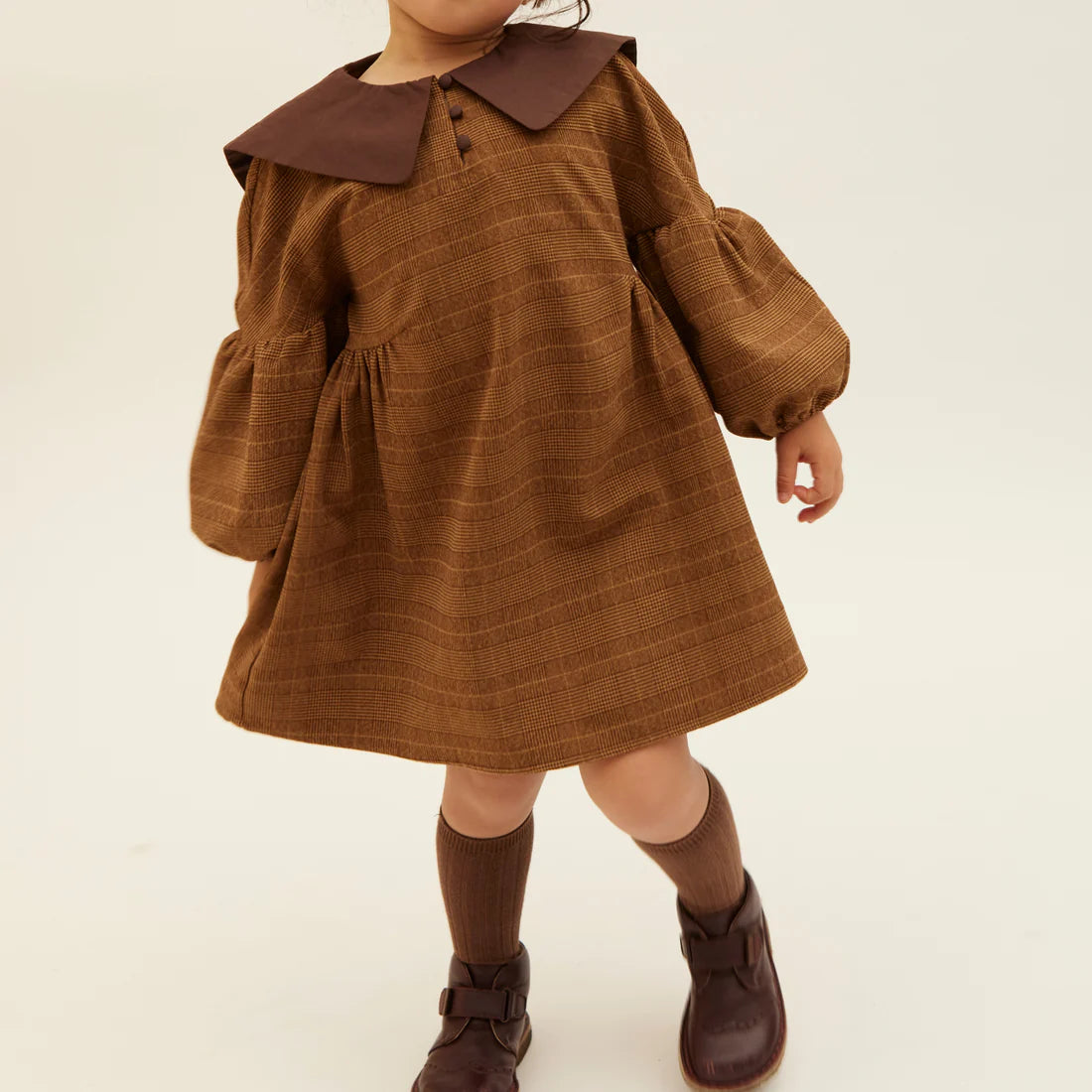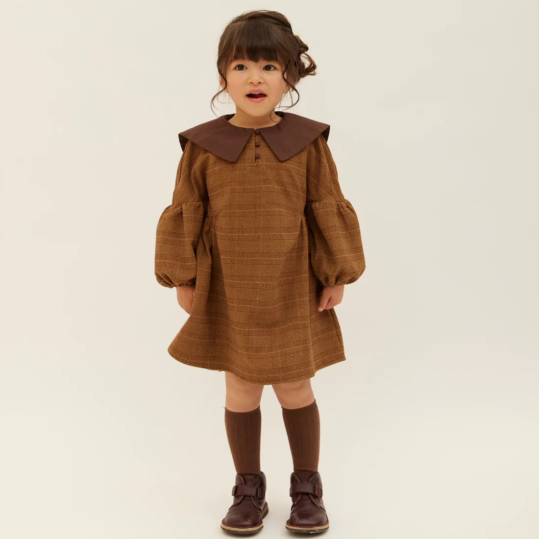 兄弟姉妹お揃いで楽しめる、高級感あふれるグレンチェック柄のワンピースとシャツが登場。