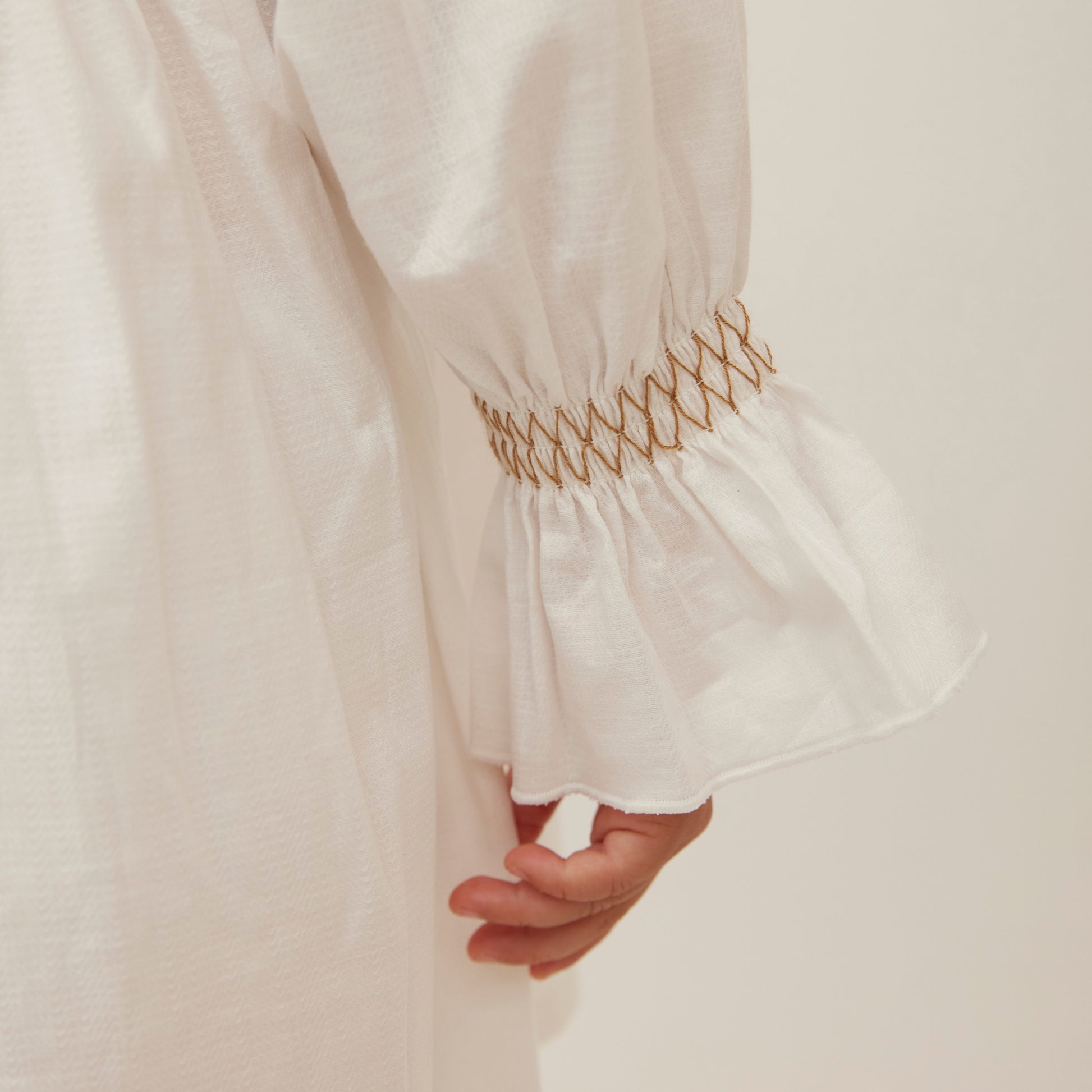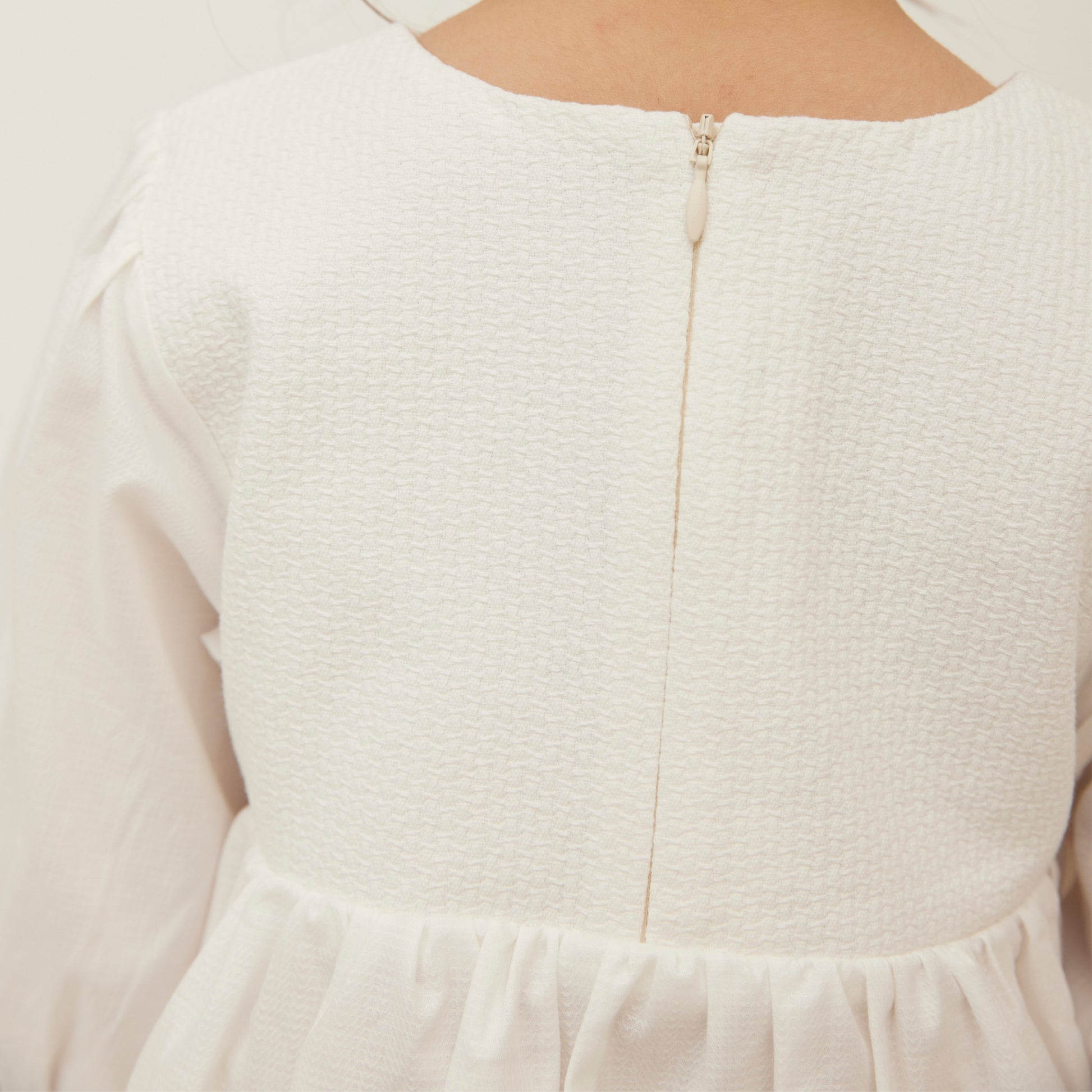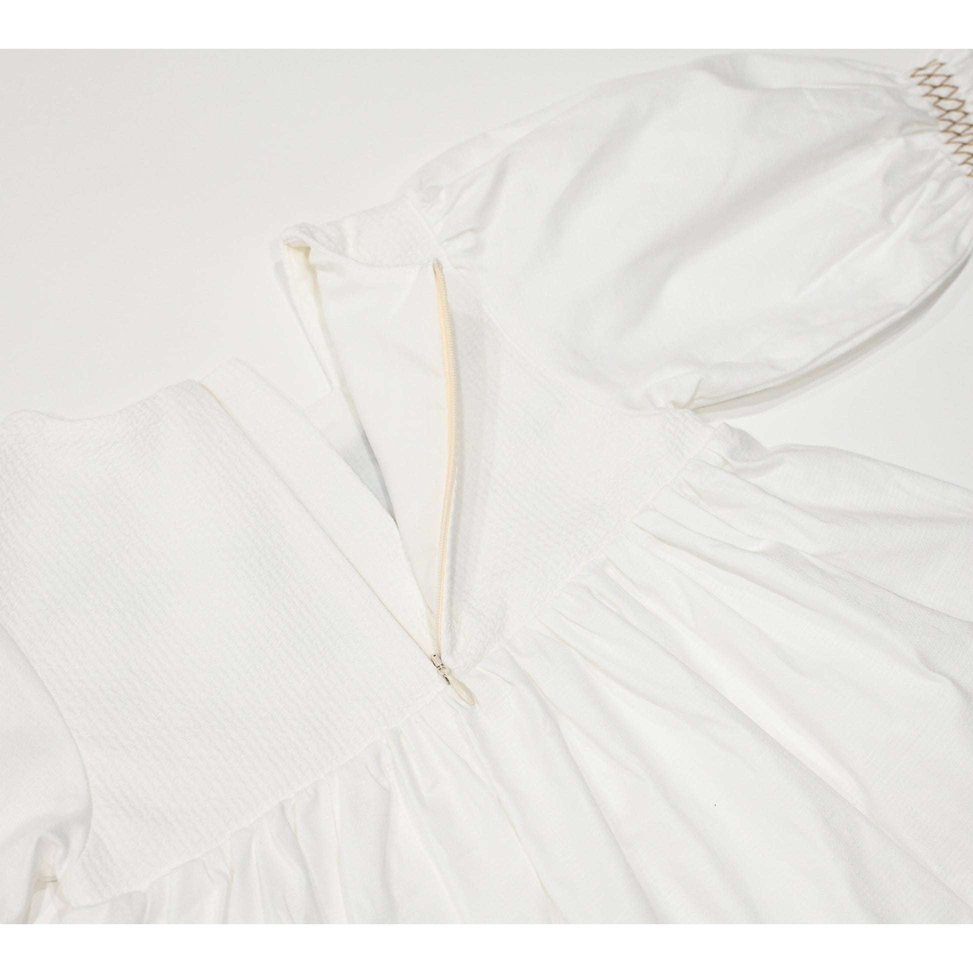 通気性が良いコットン100%素材で、爽やかな白色を基調とした、清潔感あふれるワンピース。